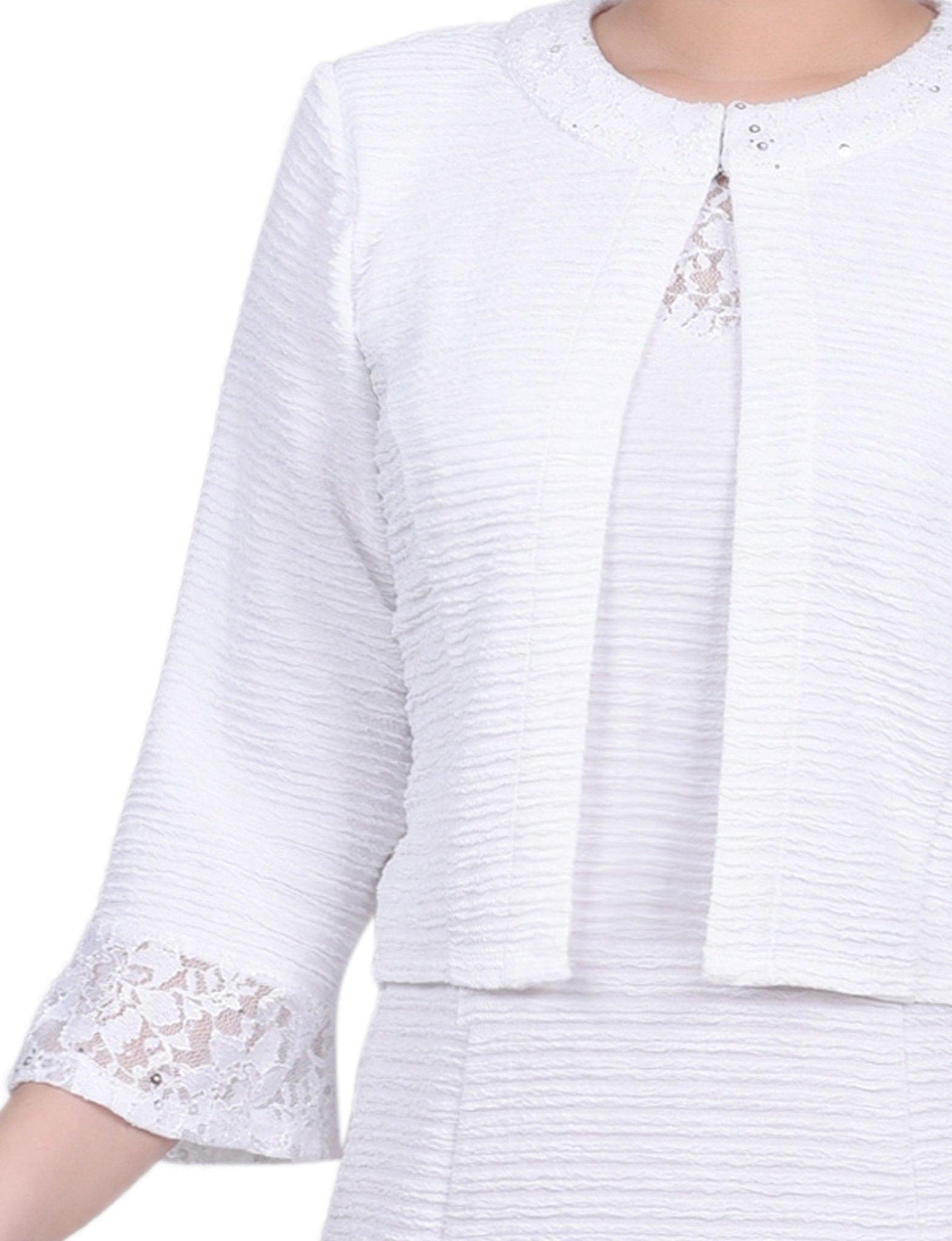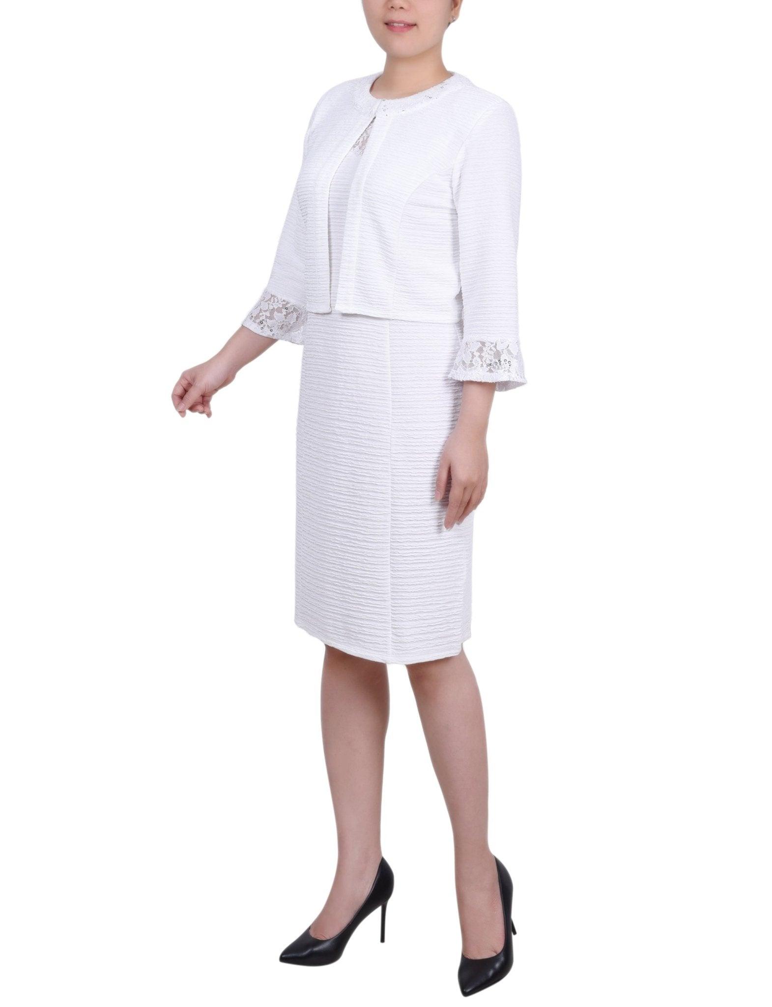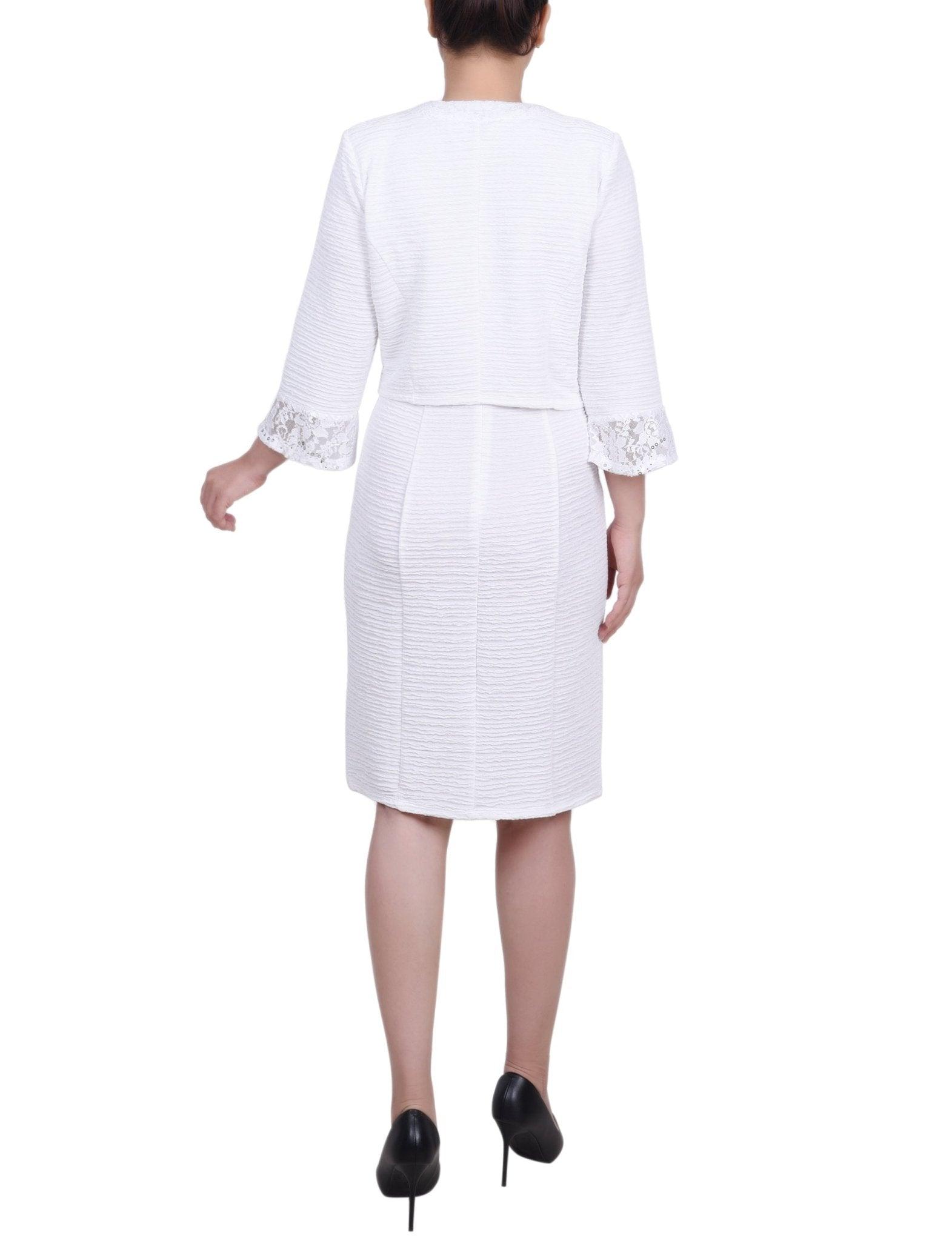 White Black Lace-Detail 2 Piece Textured Knit Dress Set - Petite
