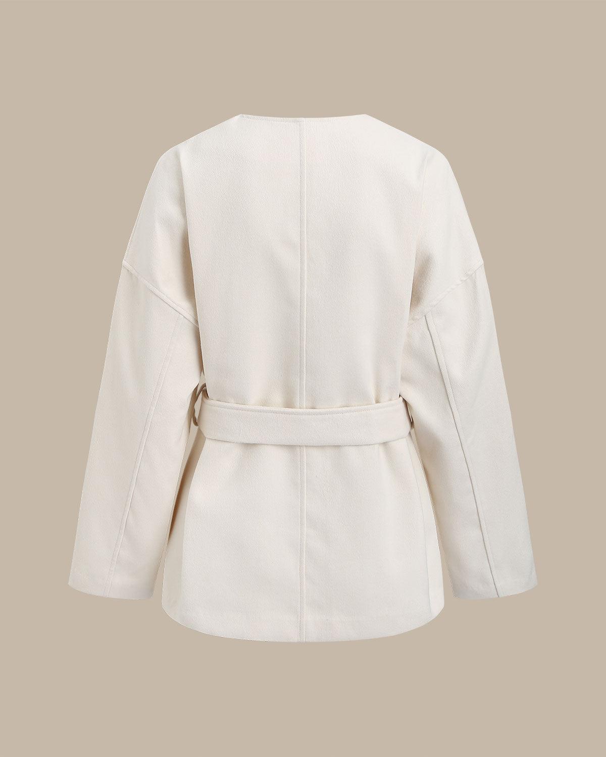 White V Neck Knotted Coat