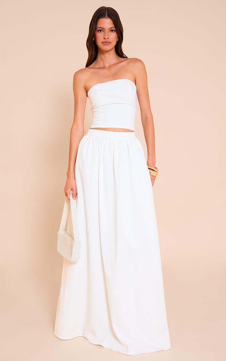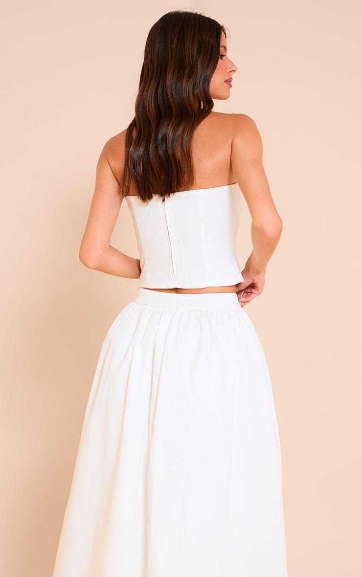 Refresh your wardrobe with the white woven seam detail bandeau top. Made from a crisp woven material with contour seam detailing, this piece is perfect for layering or wearing solo. The bandeau neckline and fitted design create a sleek silhouette. Style with the matching skirt and heels for an effortlessly chic finish.Length approx 34.5cm/13.5inch (Based on sample size US 4)Model wears size UK 8/ EU 36/ AUS 8/ US 4Model Height - 5ft 7inchp]:!mb-4inch>Brand: PrettyLittleThingCategory: Co-ordsProduct type: Bandeau TopColor: WhiteMaterial: Tailored WovenNeckline: BandeauSleeves: SleevelessOccasion: Occasion