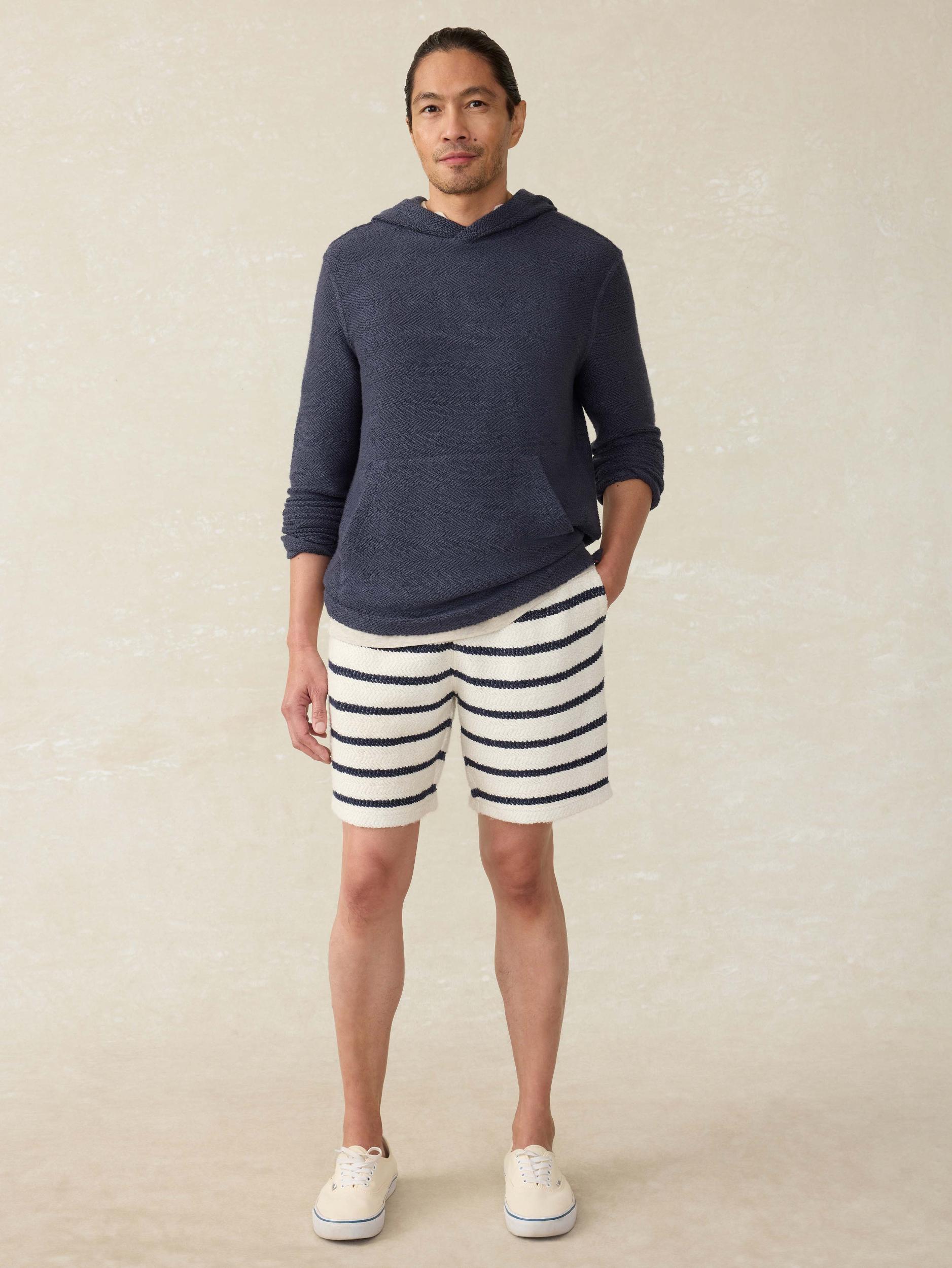 Classic details and refined styling makes this sweatshort a truly unique piece — it’s the closet staple you never knew you needed. Knit from a subtly textured multicolor jacquard — one of the lightest, airiest knits out there — and washed for ultimate softness, it’s designed with comfort in mind. Relax in ease all weekend long with an elastic waist and practical pockets, or throw a pair in your bag the next time you go traveling or hit the gym. Detail: Knit rib waistband with drawstring. Front slash pockets. Back welt pocket with button closure at wearer's right side. Material: 100% Organic Cotton Model: Hector is 5'10 wearing size Medium Care: Close all fastening before wash. Turn inside out. Machine wash cold with like colors. Delicate cycle. Do not bleach. Tumble dry low. Remove promptly. Cool iron when needed. MBS2523-BOH