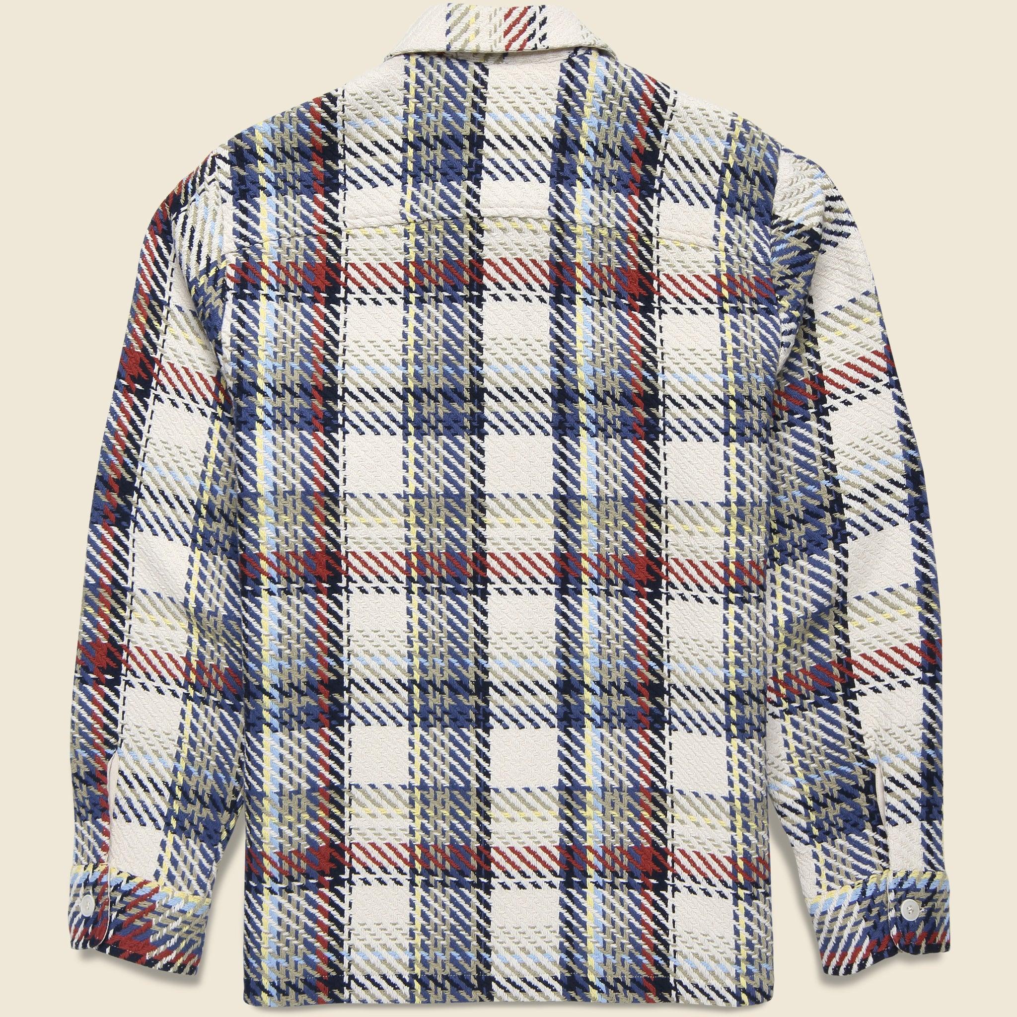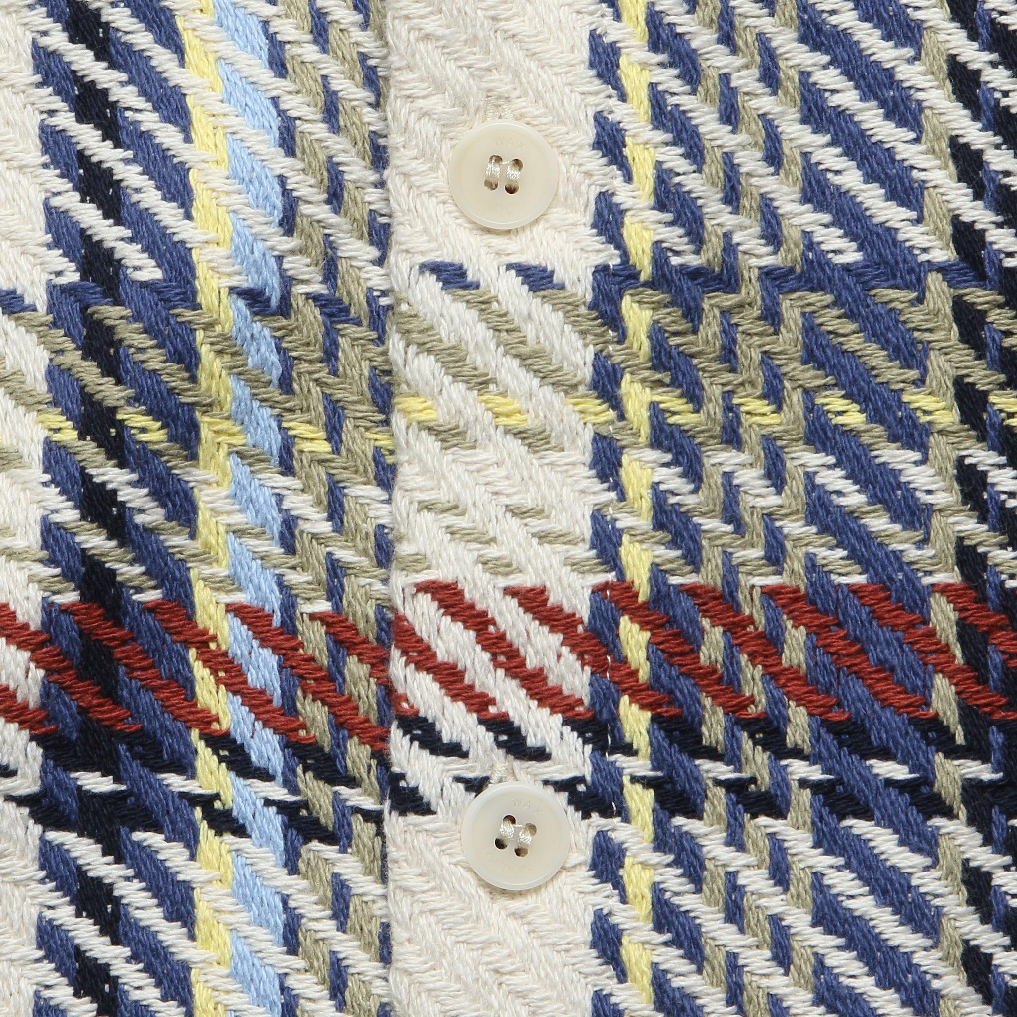 This Whiting Overshirt from Wax London is designed with a complex, unique basket weave fabric that was sustainably made by a family-run French mill using recycled cotton to make it a sustainable, reliable layer in your winter wardrobe. It has a relaxed fit that runs true to size and comes with two front patch pockets, contrast trim at the cuffs and neckline for added durability, and corozo nut buttons for a classic finish. Soft, heavyweight cotton-blend Complex, intricately woven basket weave pattern Two patch chest pockets Corozo nut buttons Spread collar Straight hem Relaxed fit that runs true to size We recommend taking your normal size Materials: 95% recycled cotton, 3% cotton, 2% other fibers The following measurements are for size Medium: Chest: 44” | Shoulder: 17” | Sleeve: 33 ½” | Length: 30”