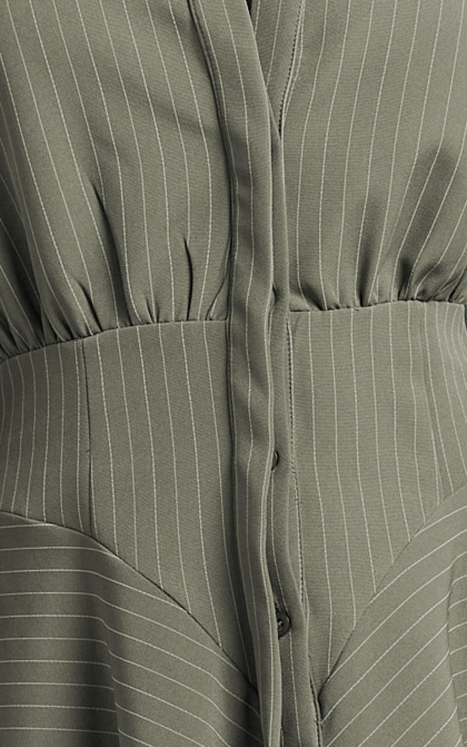 Whitney Mini Dress - Linen Long Sleeve Shirt Dress in Grey Keisha Stripe