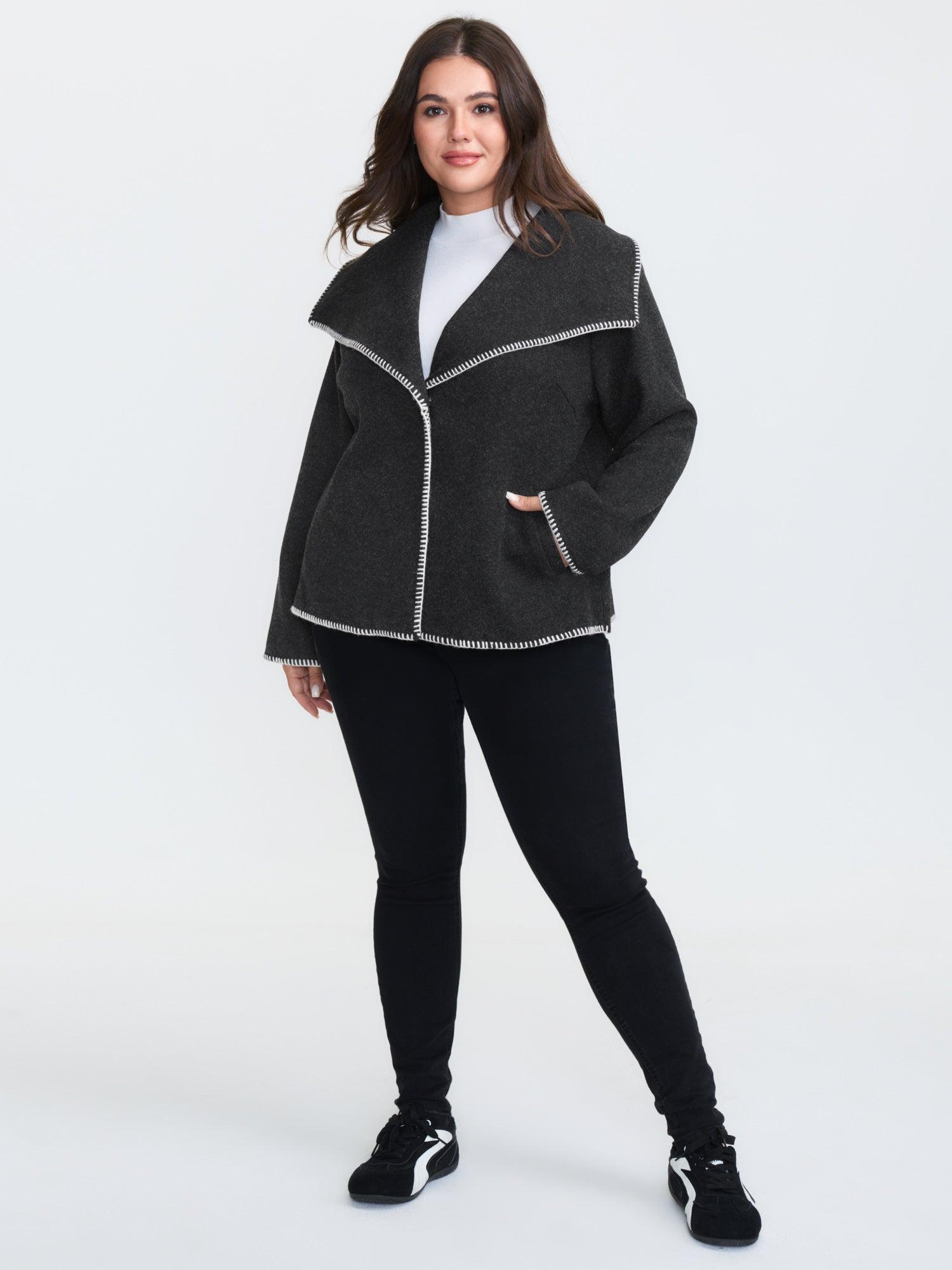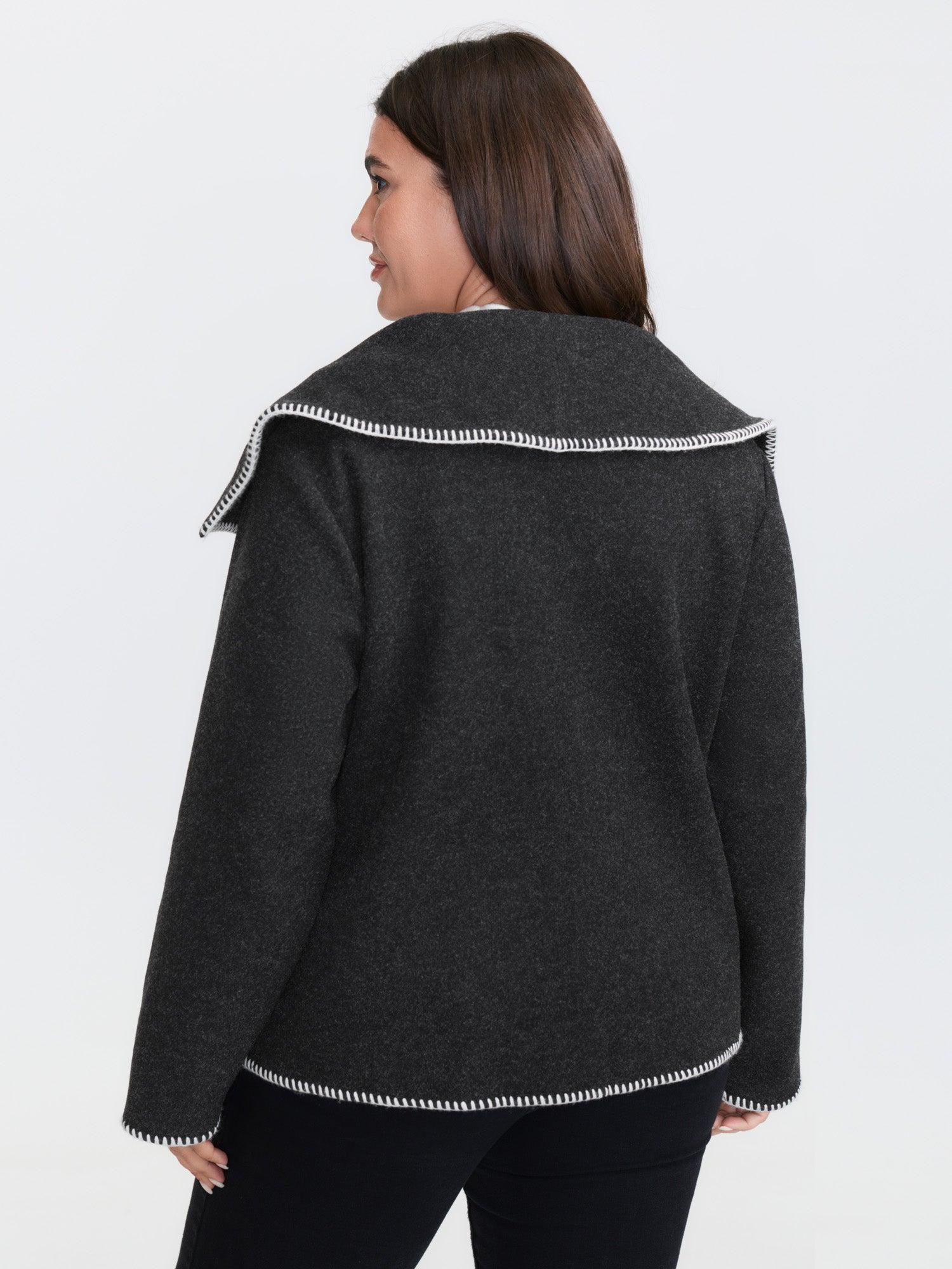 Shop Wide Lapel Color Contrast Cropped Jacket now and redefine your style with confidence at BloomChic. Tailored for mid and plus-size women. This trendy Outerwear Women, sizes 10-30. Color:Black;Style:Leisure;Prints:Non;Details:Texture;Pocket:Slanted pocket;Belt:No-belt;Closure Type:Tie belt;Lining:Lining