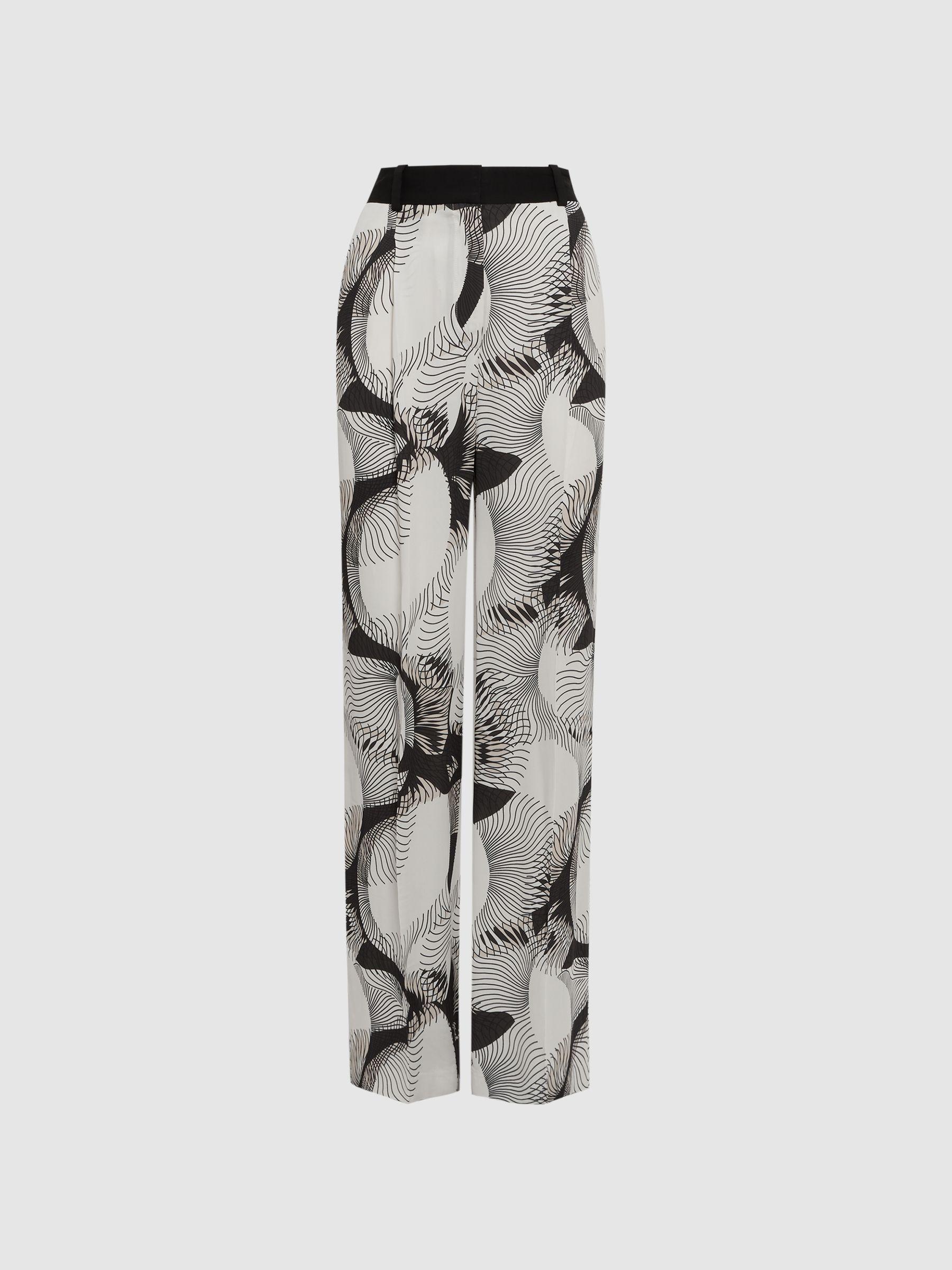 The Becci trousers are designed in an abstract monochrome print and cut to sit mid-rise on the frame. They skim the profile through to a wide-leg finish, ideal for pairing with elevated shoes. Choose the coordinating blouse to reimagine your workwear wardrobe. Abstract print Mid rise Wide leg