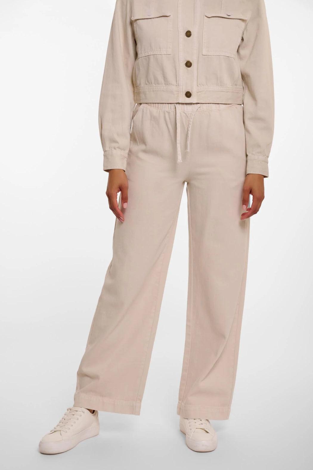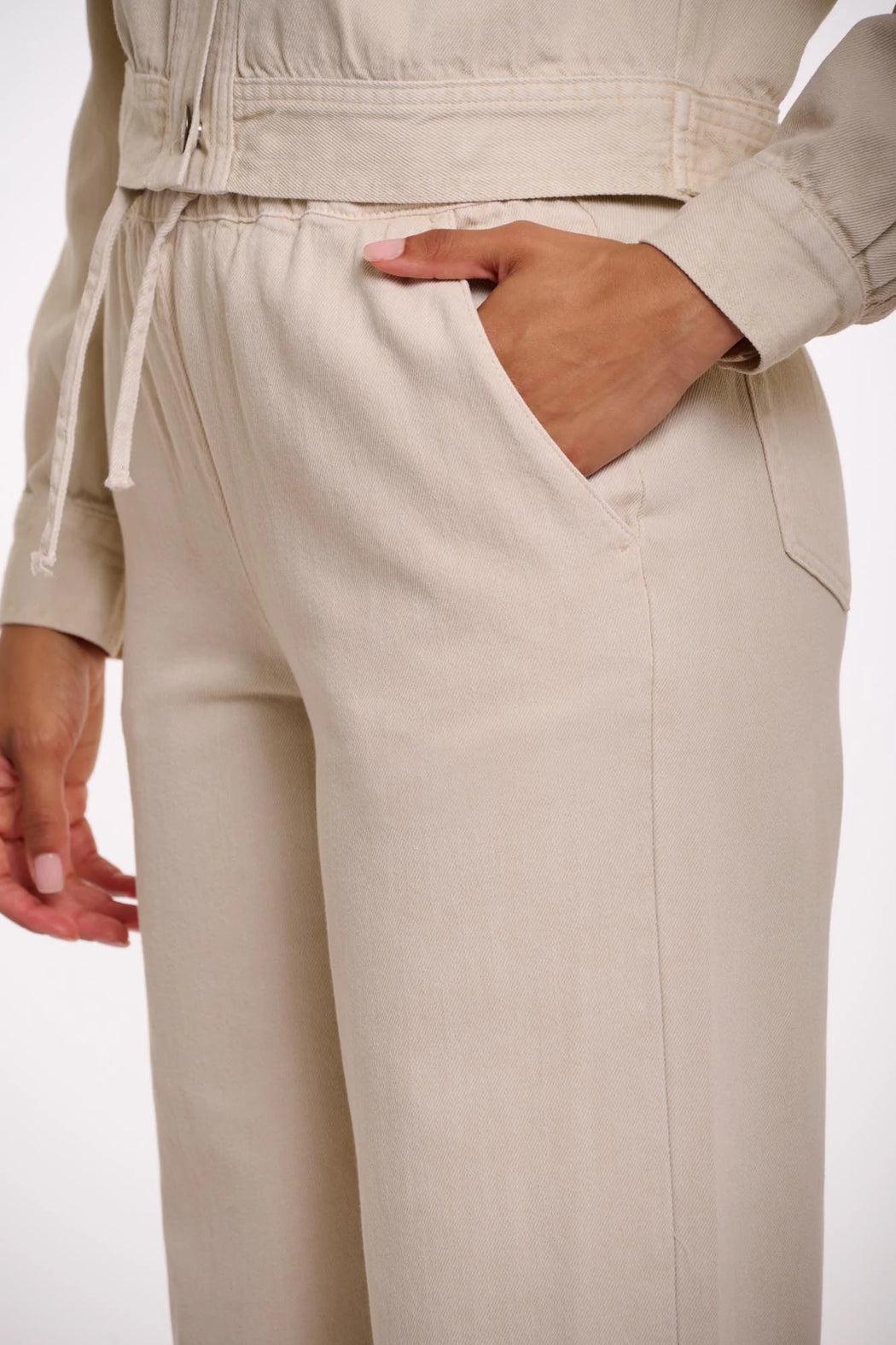 Elevate your casual chic look with these wide leg colored denim trousers, designed for both style and comfort. Featuring an elastic waistband with drawstrings, side slit pockets, and back pockets, these pants are the perfect blend of fashion and function.