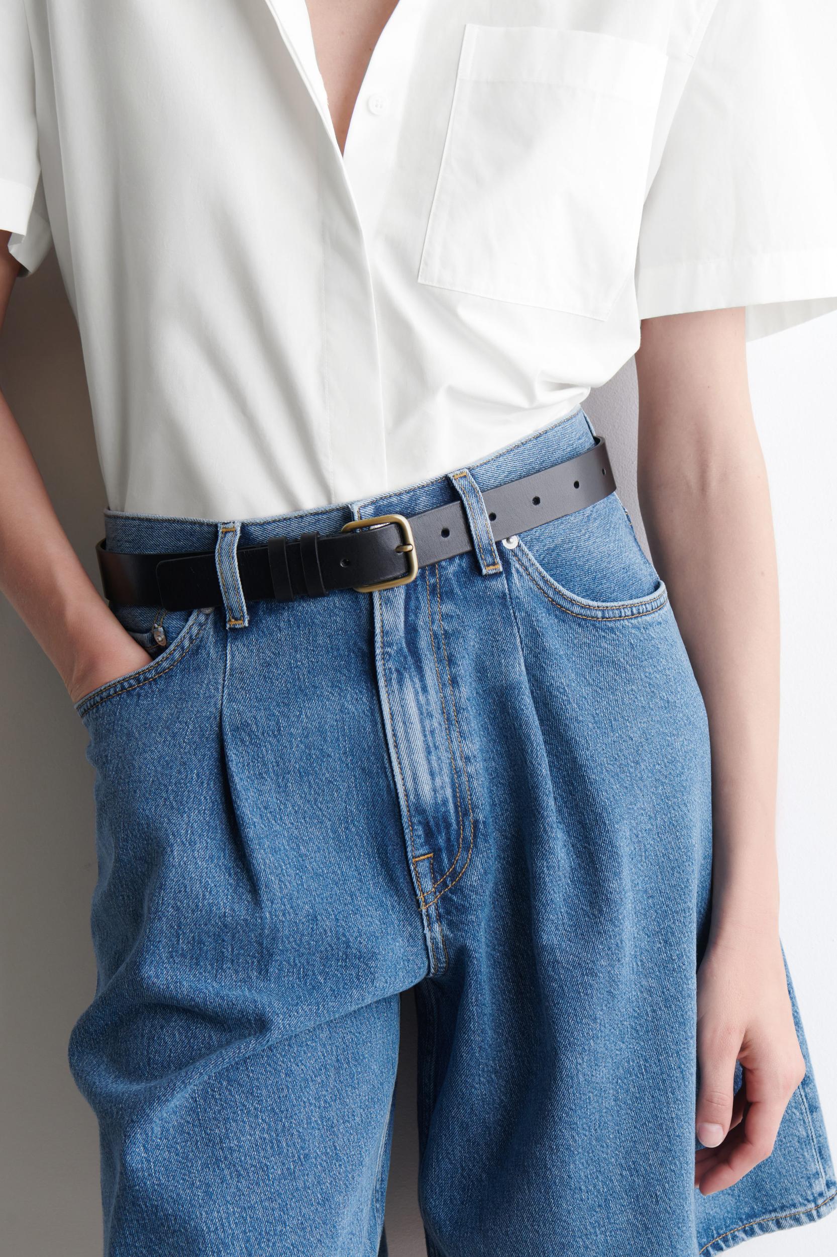 Denim shorts are a pillar of the summer wardrobe. Offered in a chalk-white wash, this modern pair is made from organic and recycled cotton and features pleated detailing and a wide-leg shape that hits at the knee. Style them with a white shirt for a minimal look. Relaxed fitButton and zip closureOrganic cotton is grown from non-genetically modified seeds without chemical fertilizers or pesticides Shell: 80% Organic cotton, 20% Recycled cotton. Excluding trims / Machine wash Inside leg length of size 6 is 8.98” / Model wears a size 6