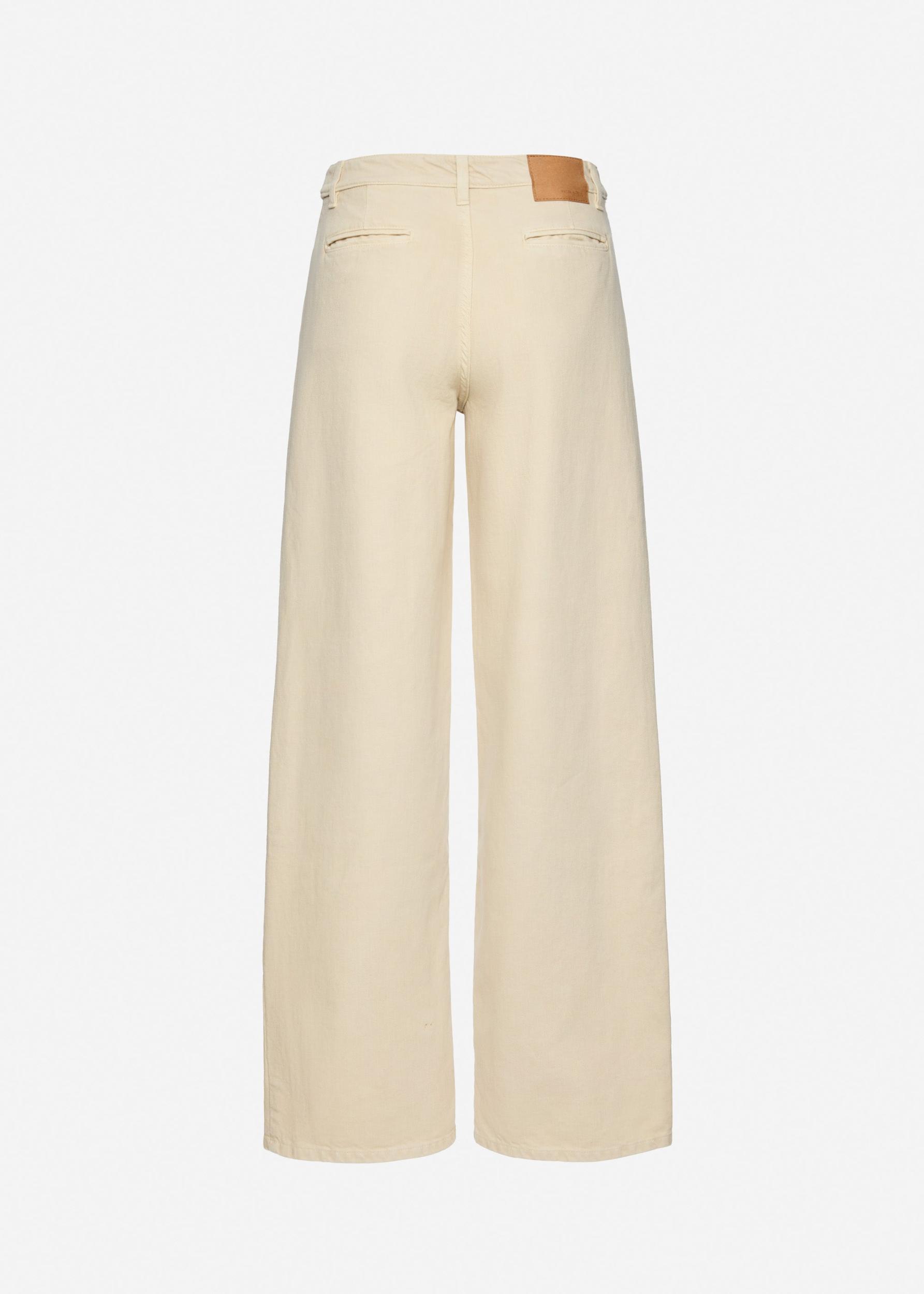 Low-waisted denim trousers with a relaxed, wide-leg silhouette. Designed with a classic zip fly and button closure, belt loops, and side pockets.