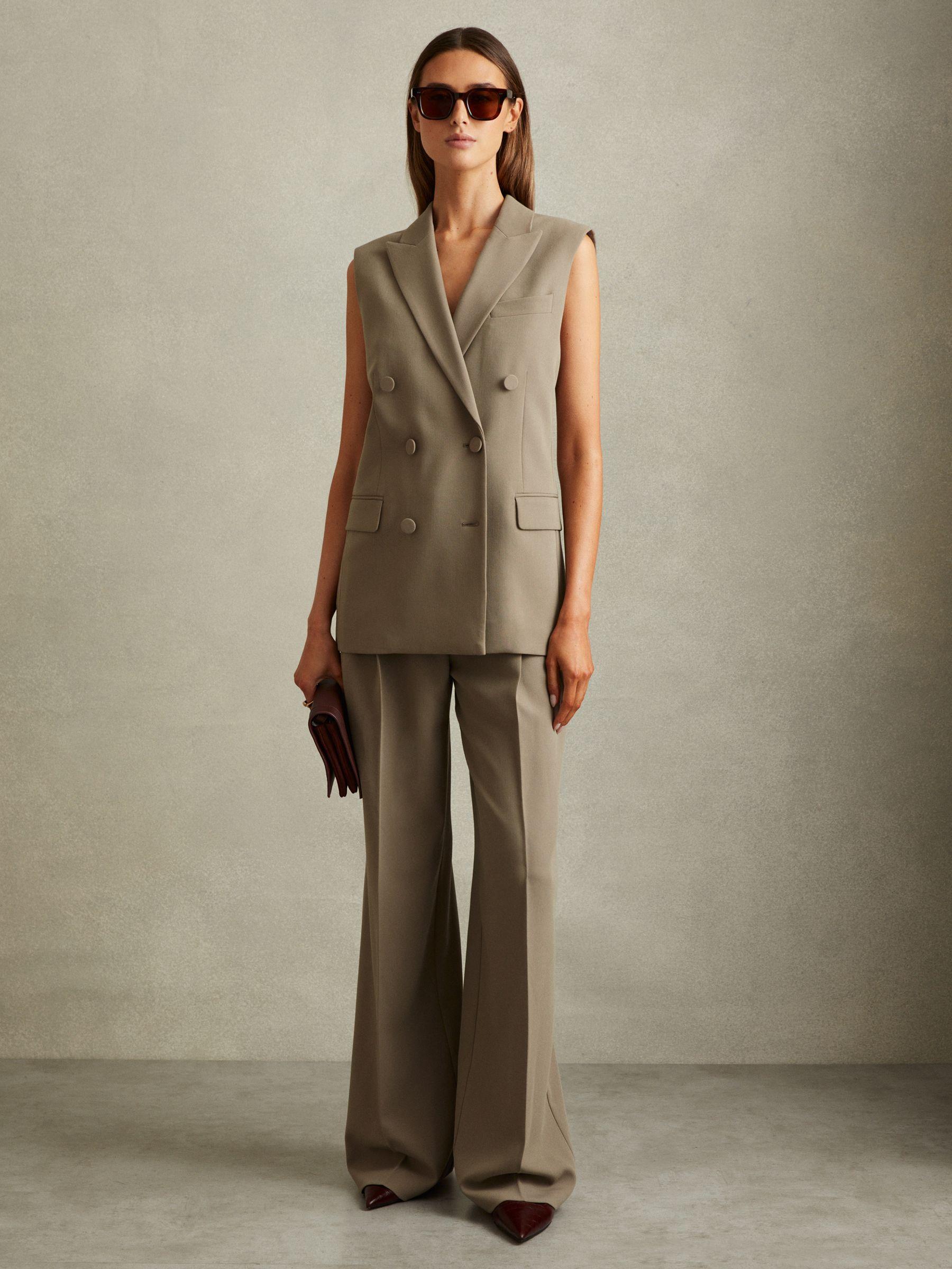 The Madelyn trousers are made from a soft suiting fabric and arranged in a wide-leg shape with front pleats. Fitted high on the waist, they pool at the ankles for an elongated profile. Matching blazer. Front pleats. Side pockets. Jetted pockets to reverse. Wide leg.