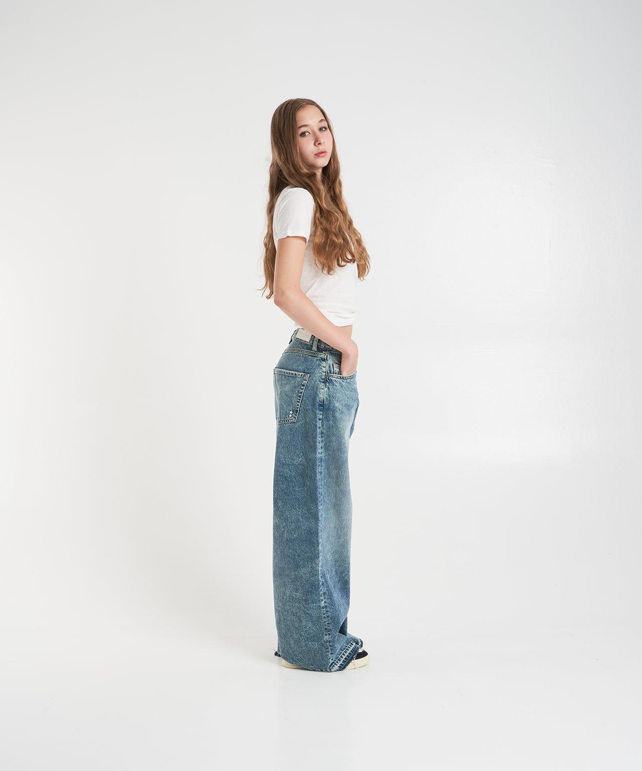 The 'Debby' jeans from Icon Denim feature a trendy wide leg cut and a high-waist design. Crafted from durable denim, they offer a comfortable fit and are versatile for various combinations. The design includes classic five pockets and a front button and zip closure. These trousers are a timeless essential for stylish outfits.Wide legHigh-waistLoose FitFive-PocketButton and Zip ClosureJeansBelt-loopsWashed areasLogo details