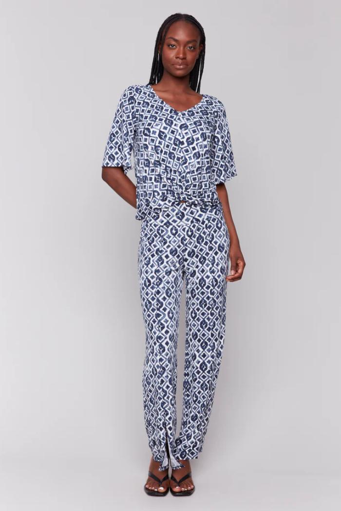 These wide leg pants from Charlie B feature a stylish slit at the front hem for added flair. The wide leg design provides a comfortable and flattering fit, while the slit adds a touch of sophistication. Elevate your wardrobe with these versatile and stylish pants