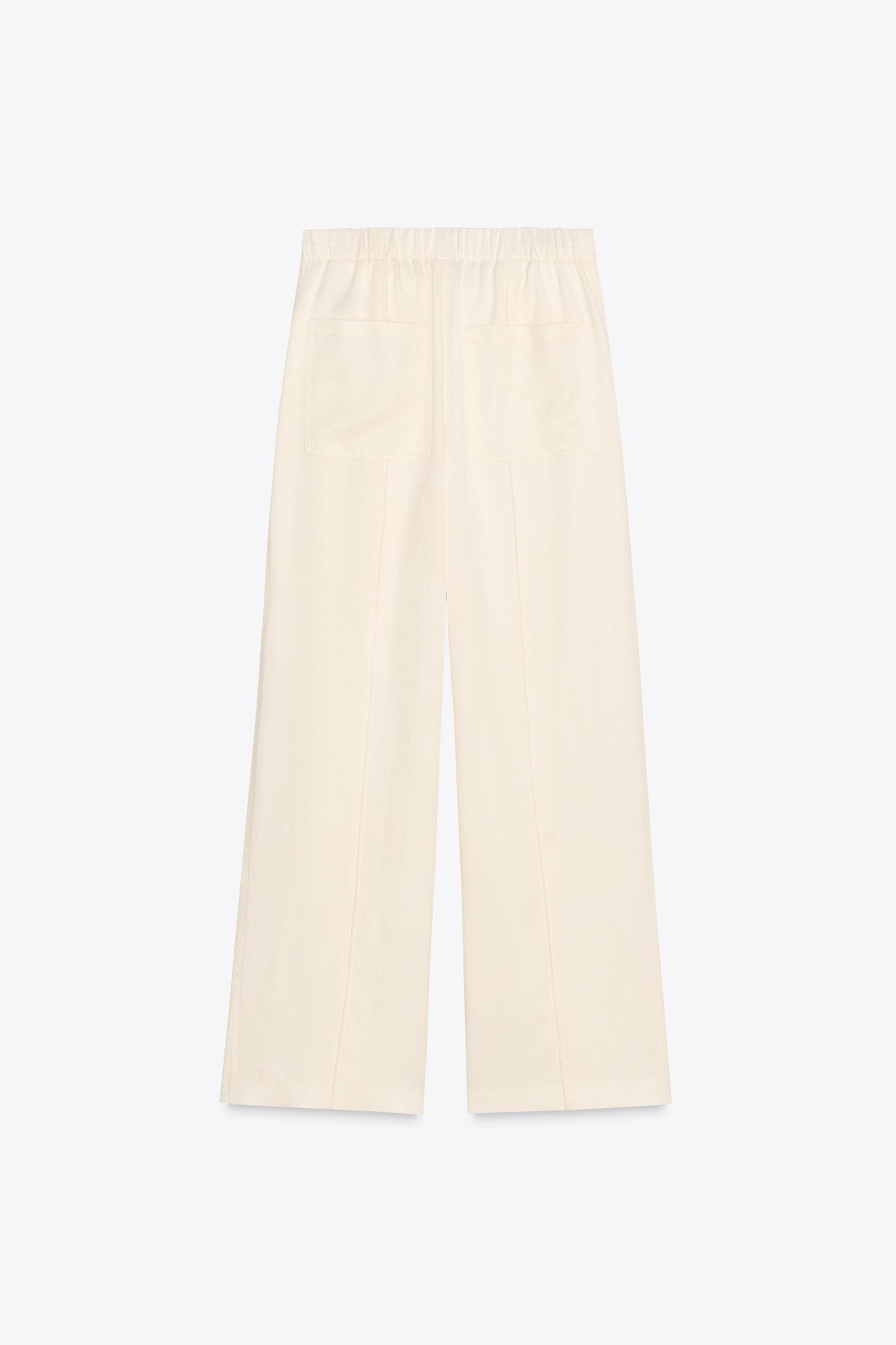 ZARA WOMAN COLLECTION Pants made of viscose yarn. Mid-rise elastic waistband. Side seam pockets. Wide leg.