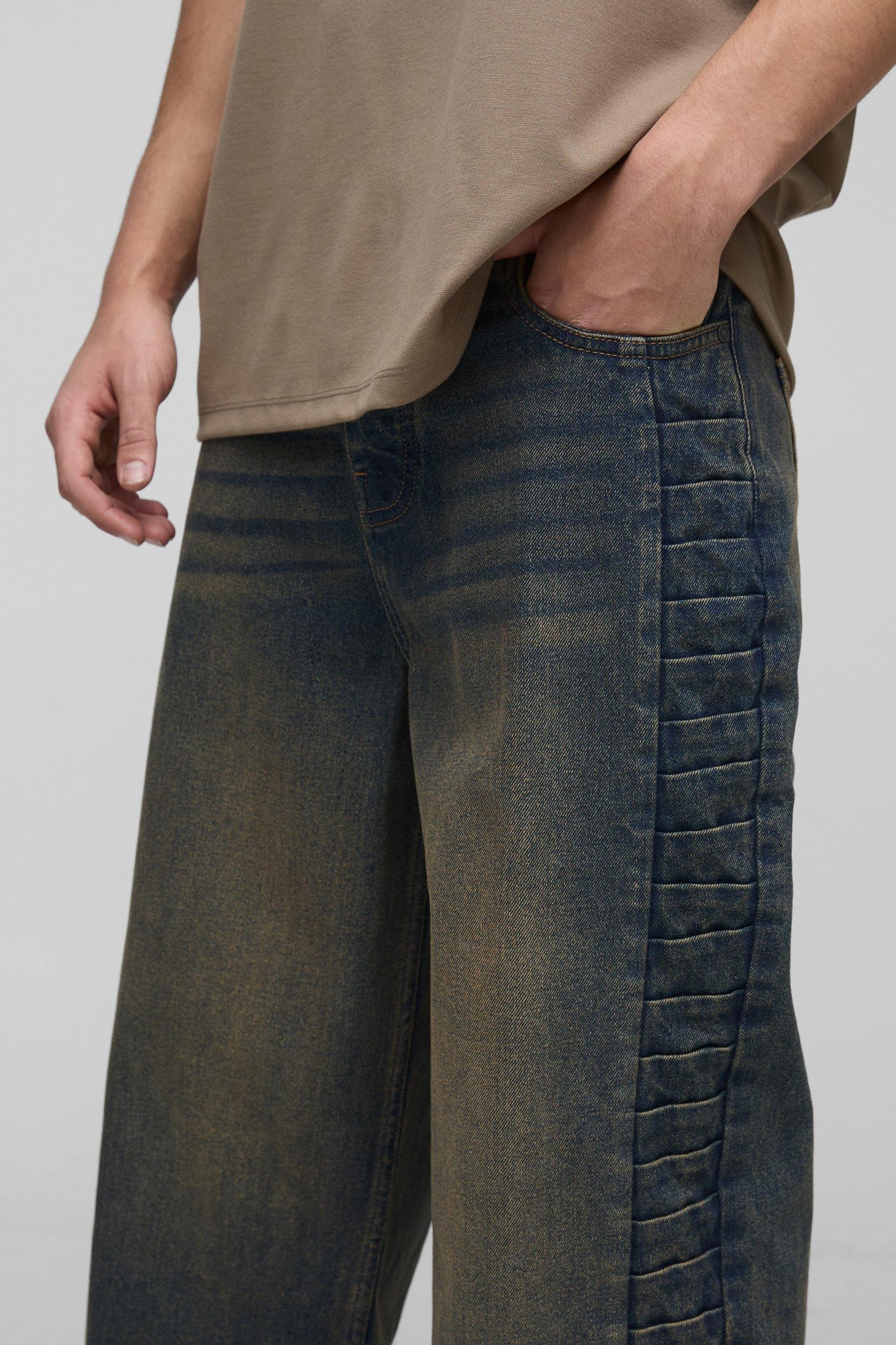 Give yourself some extra room in wide leg jeans. Our wide leg jeans offer an unmatched unique style to your wardrobe. The signature utility pockets and hammer loop add both functionality and a distinctive style, what's not to love? These versatile men's wide leg jeans allow you to feel dressed up or down, depending on the occasion. Every man needs a pair of wide leg jeans in their 'drobe, perfect for styling up any outfit. Pair these jeans with a fitted top or go for an oversized shirt for a relaxed outfit. They work well with both sneakers and boots, making them suitable for casual outings, creative workplaces, or weekend hangouts with friends.Style: Detail JeansDesign: PlainFabric: DenimDetail: PanelledLength: Regular