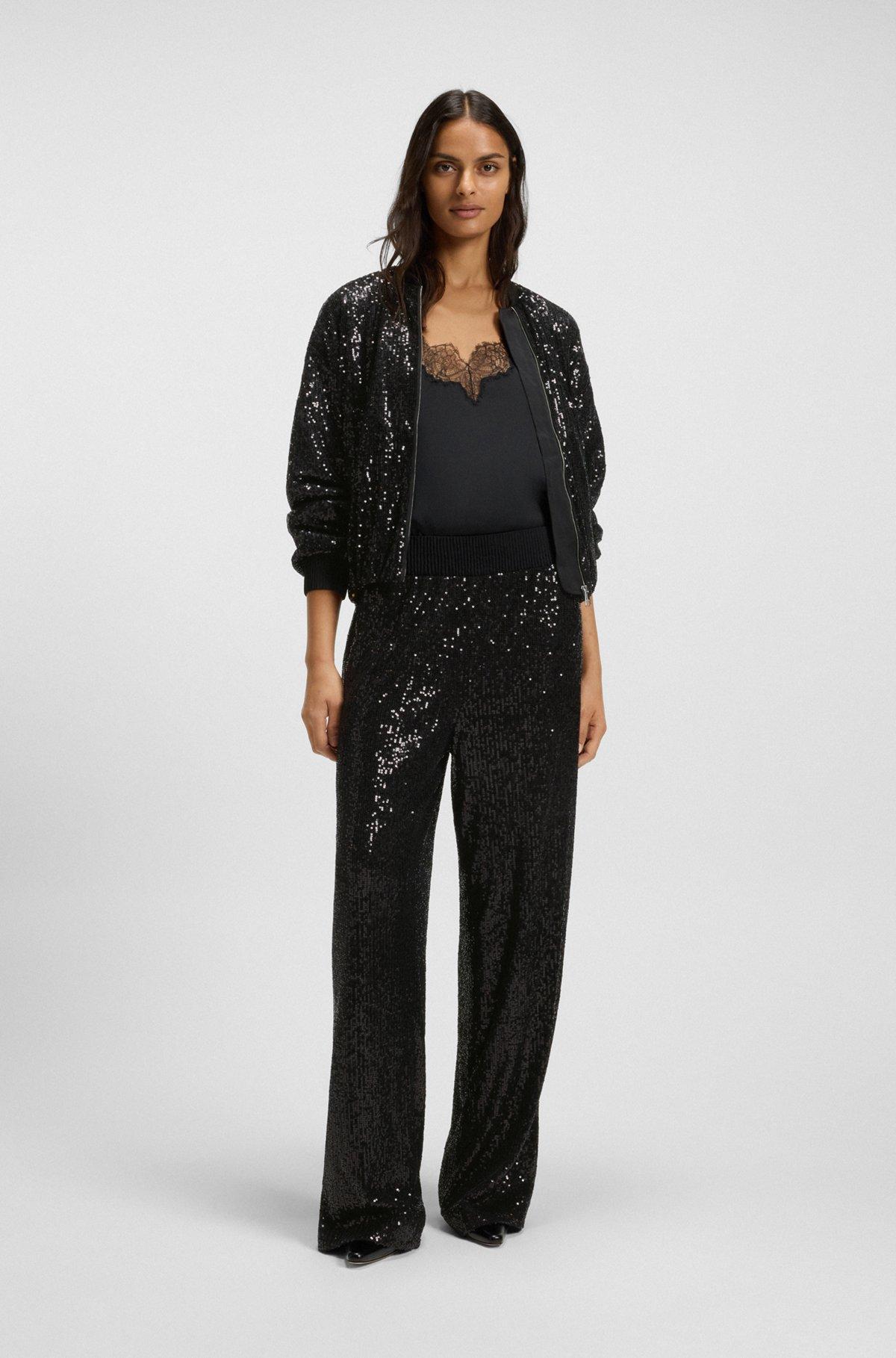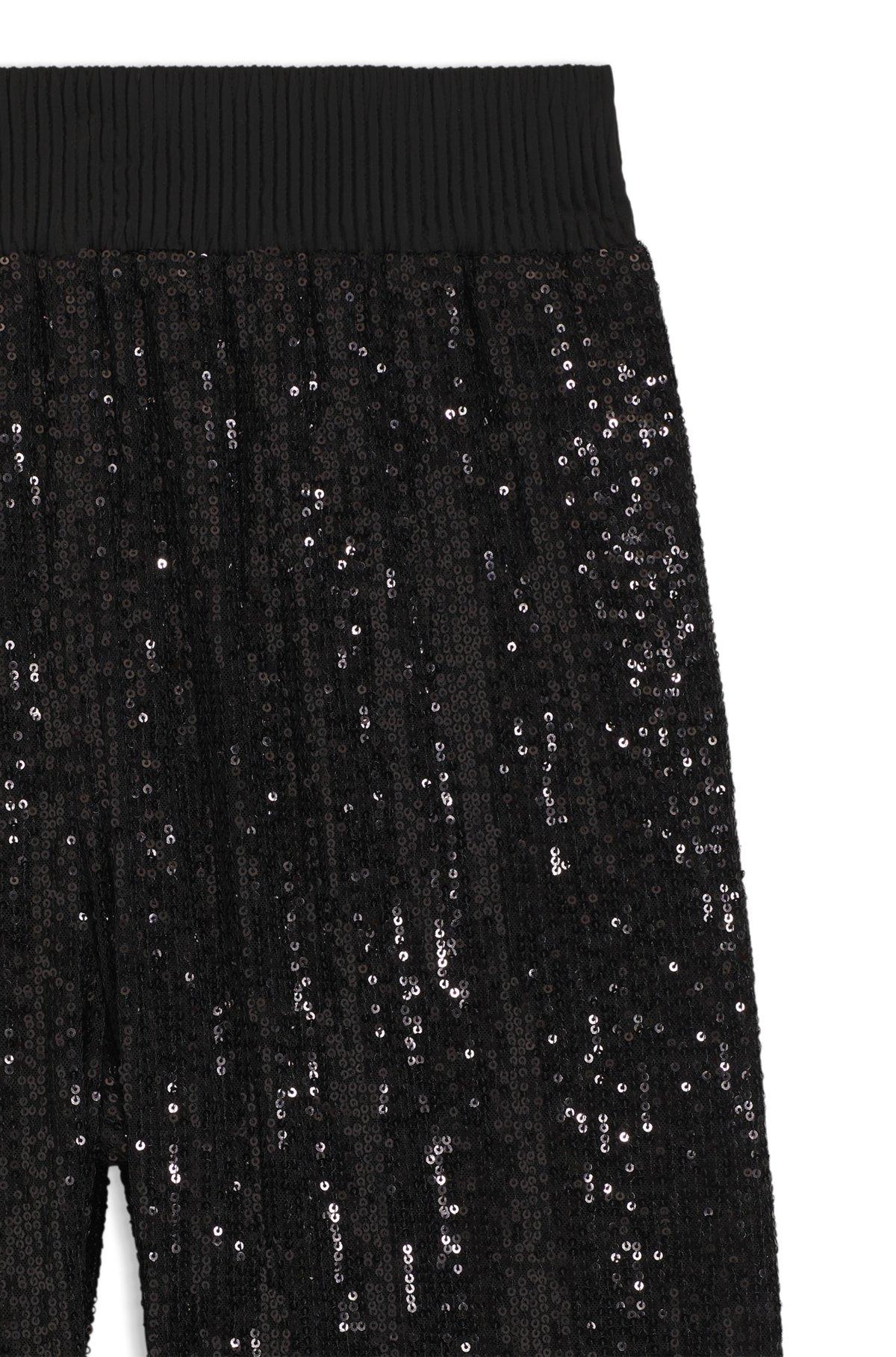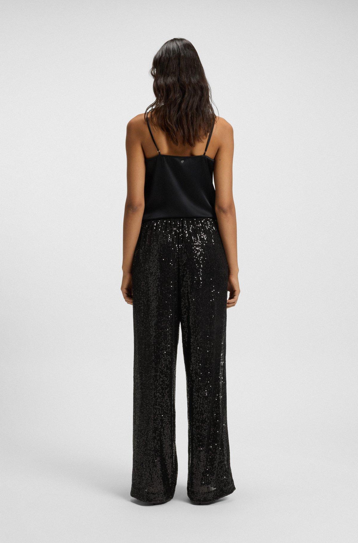 Embellished all over with sequins, these BOSS Womenswear trousers are a strong look for evening events. Wide-leg profile. Satin waistband.
