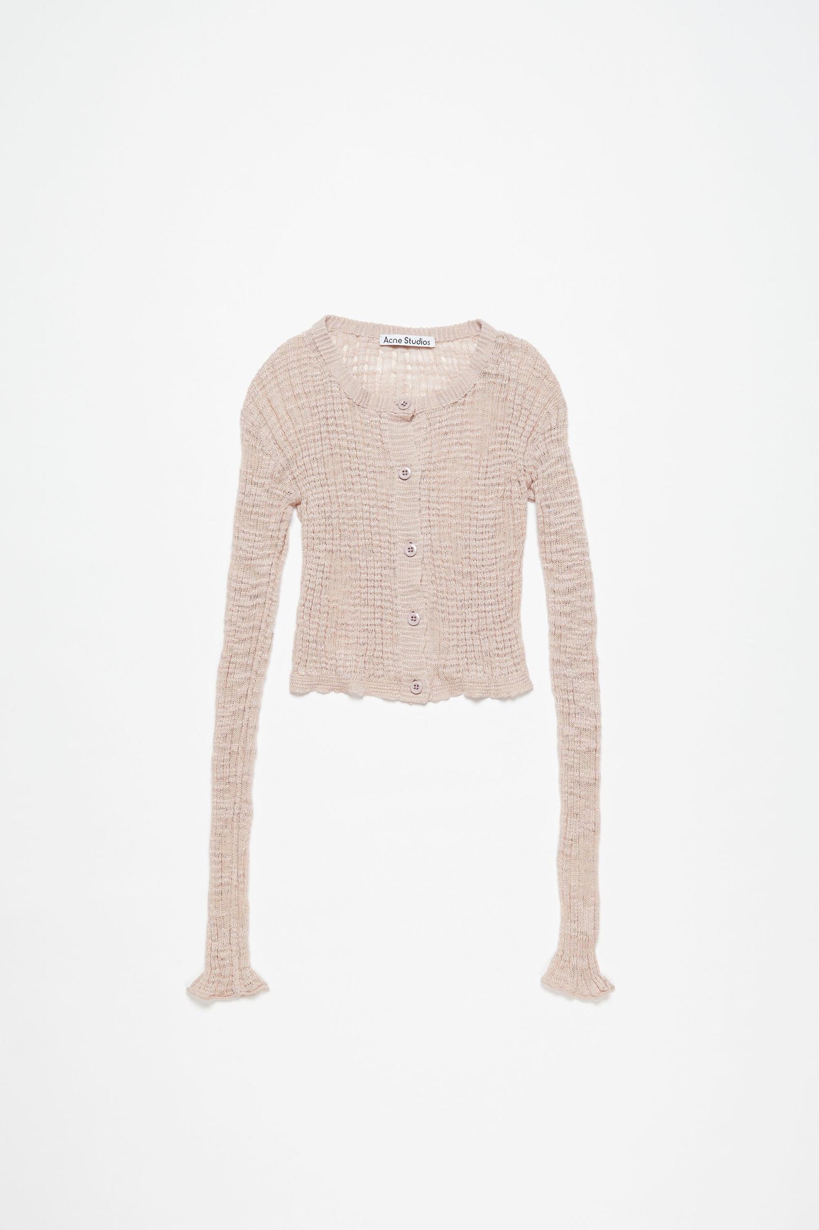 Cardigan is crafted from a wide rib knit made of a linen blend with an irregular texture with a semi-sheer finish. Detailed with a centre front button-up closure, cut to a fitted fit and waist length. FN-WN-KNIT000585