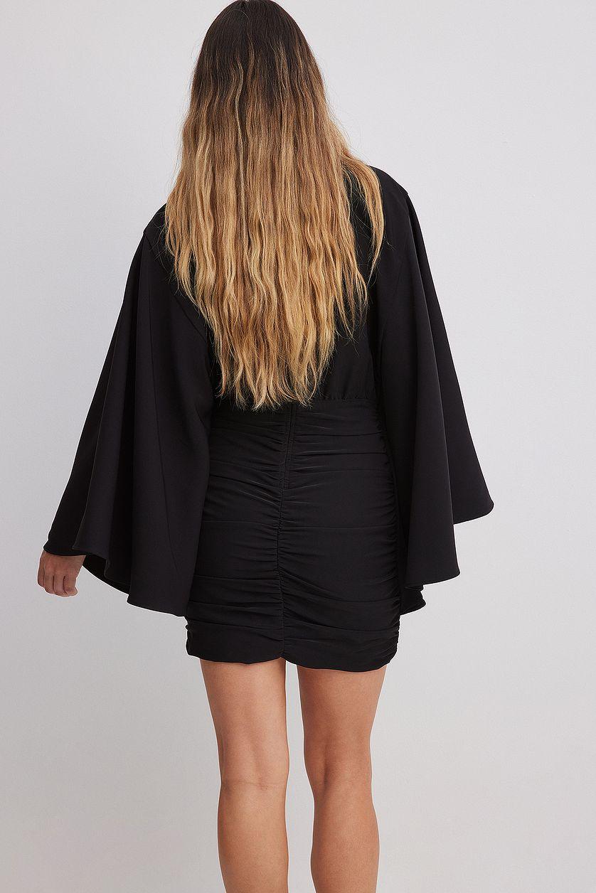 Wide Sleeve Draped Mini Dress