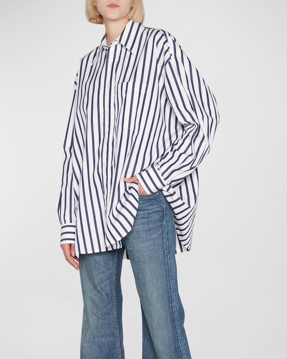 Cut in an oversized silhouette, Bottega Venetas button-front shirt is crafted of poplin and finished with a contrast striped pattern. Shirt collar Drop shoulders Long sleeves with button cuffs Chest patch pockets Button front Back yoke 100% cotton Dry clean Made in Italy SIZE & FIT About 32 from shoulder to hem Model measurements: 510 tall Model is wearing a US size 4 ABOUT THE BRAND Founded in 1966, the label known for fine Italian craftsmanship with creativity at its core has since catapulted to cult-level status. The houses storied intrecciato pattern in shoes and handbags, alongside its signature minimalist ready-to-wear, have made the label an editor and It-girl favorite. Advanced European - Bottega Veneta > Bottega Veneta > Saks Fifth Avenue > Barneys. Bottega Veneta. Color: White Navy. Size: 6.