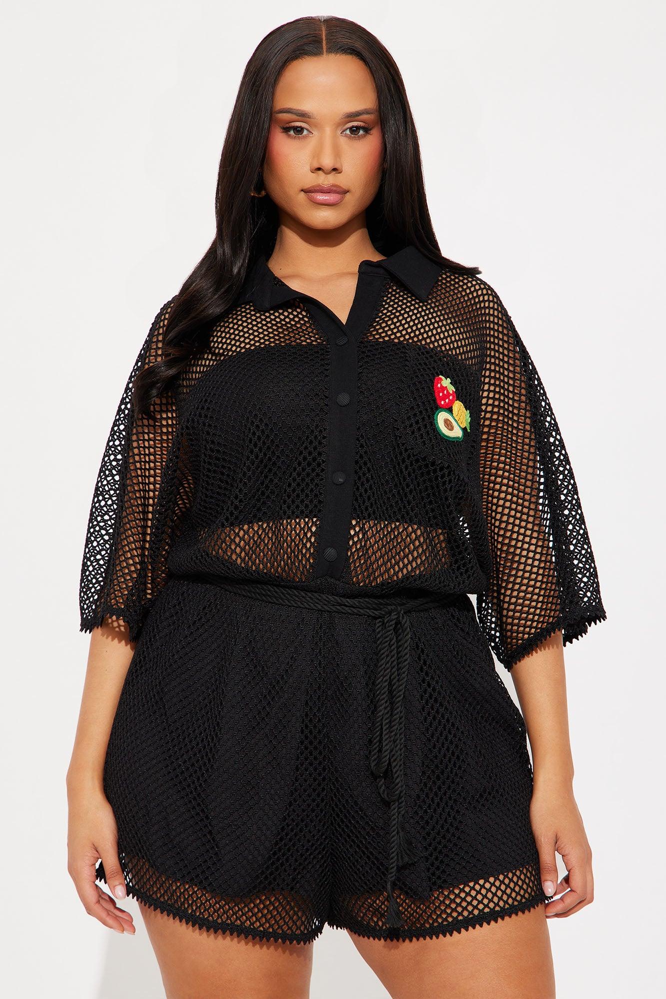 Available In Black. Romper Button Up Front Opening Snap Button Flowy Short Lined Short Non Stretch Self / Lining 100% Polyester Imported