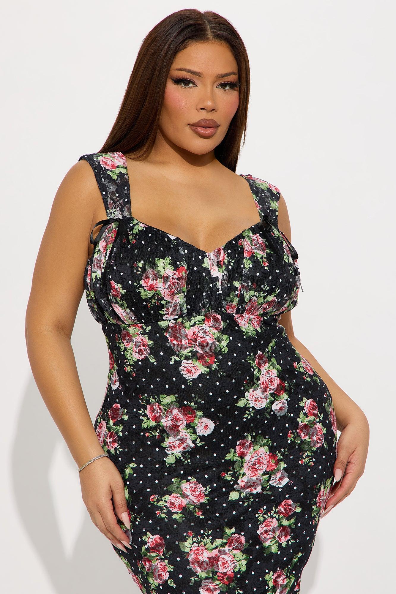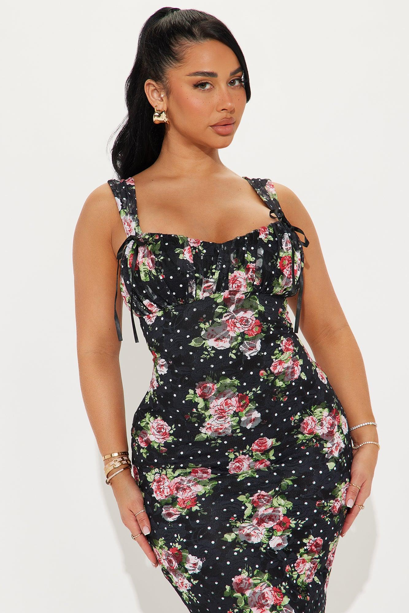 Wild Rose Floral Lace Midi Dress - Black/combo