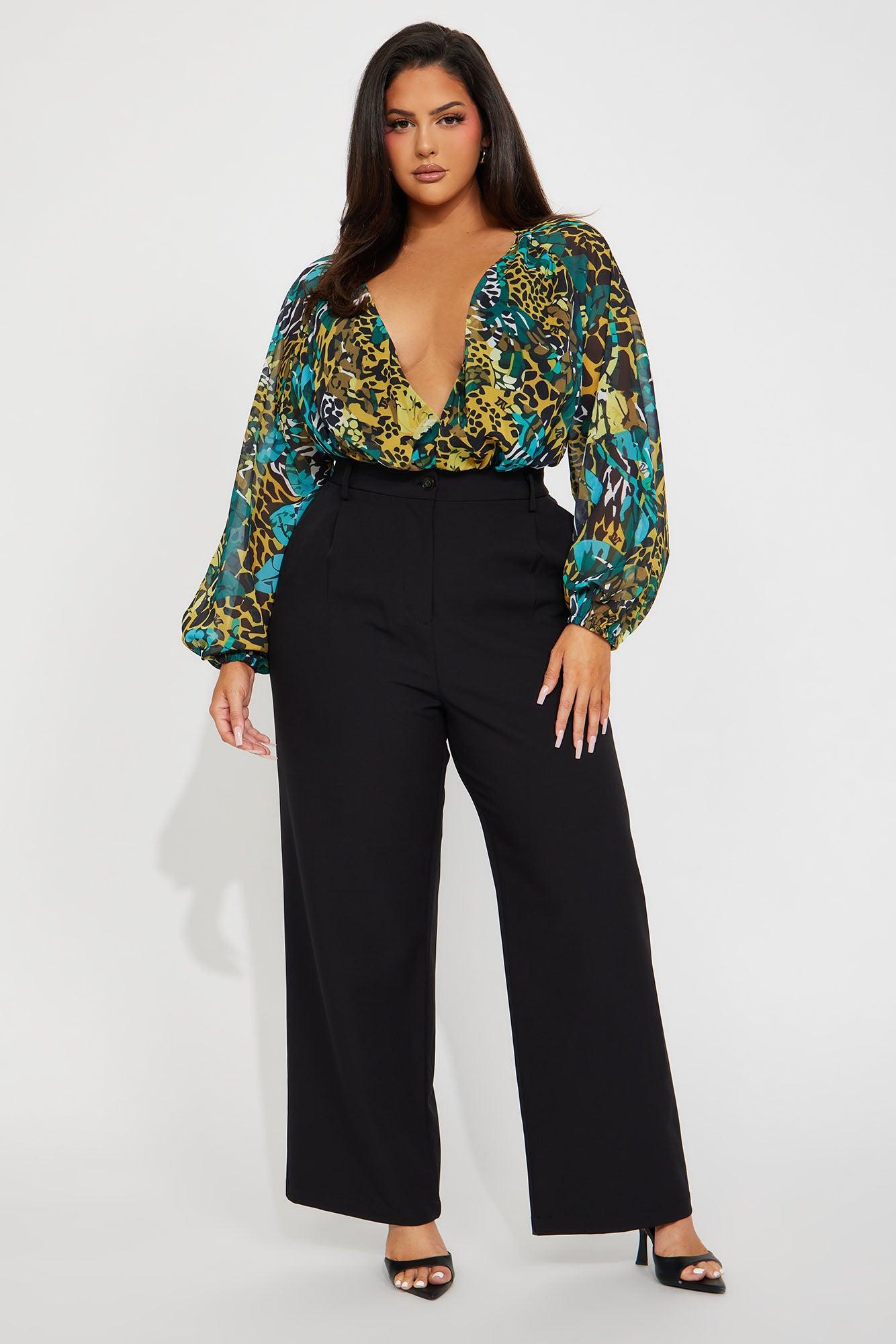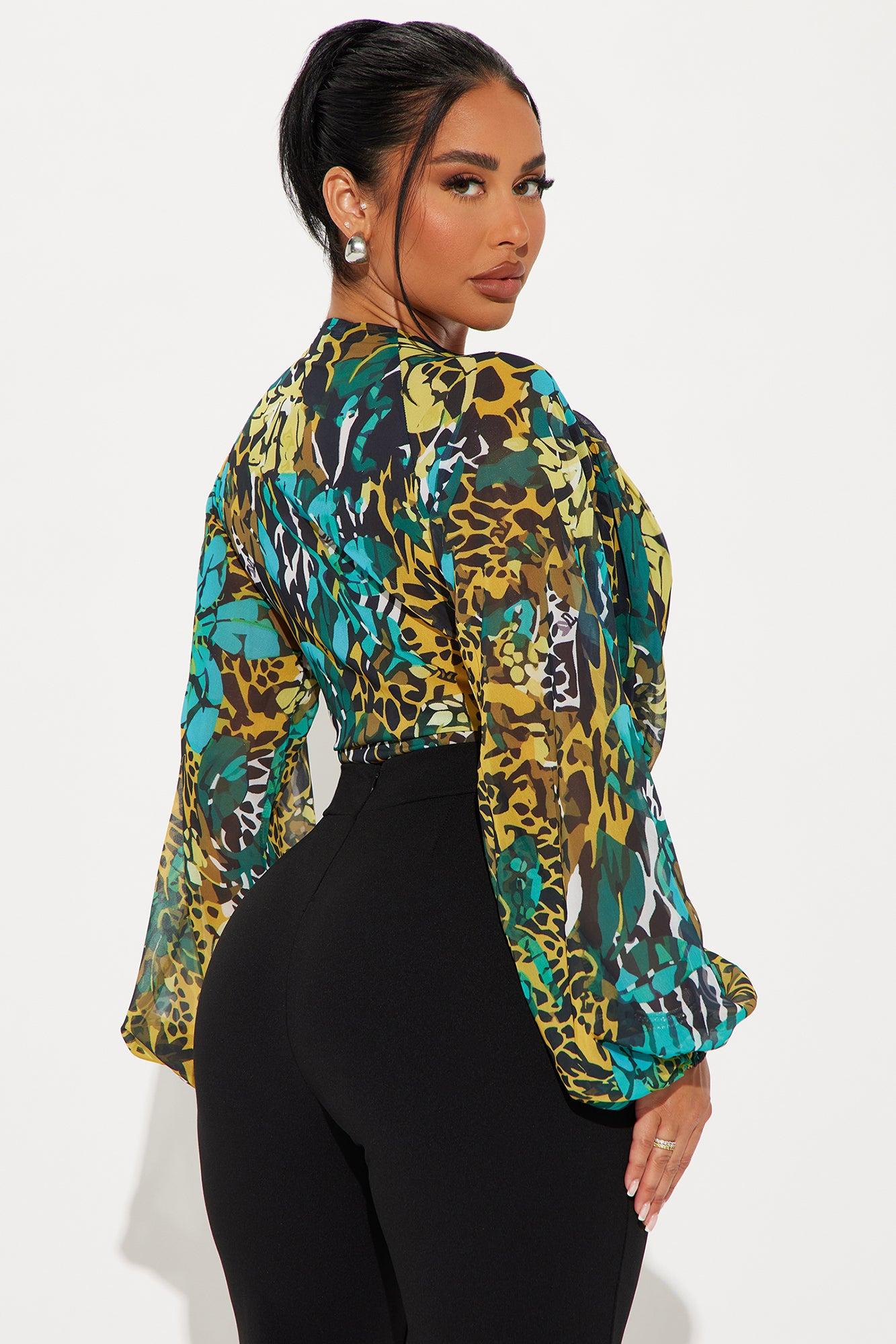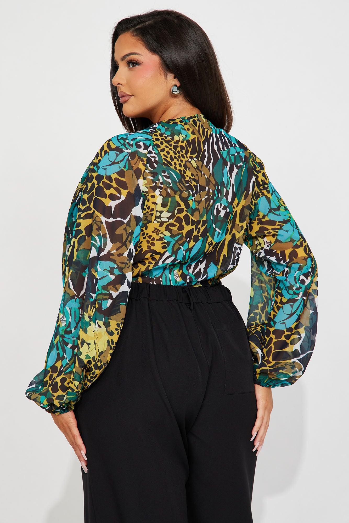 Wild Side Deep V-Neck Bodysuit - Blue/combo
