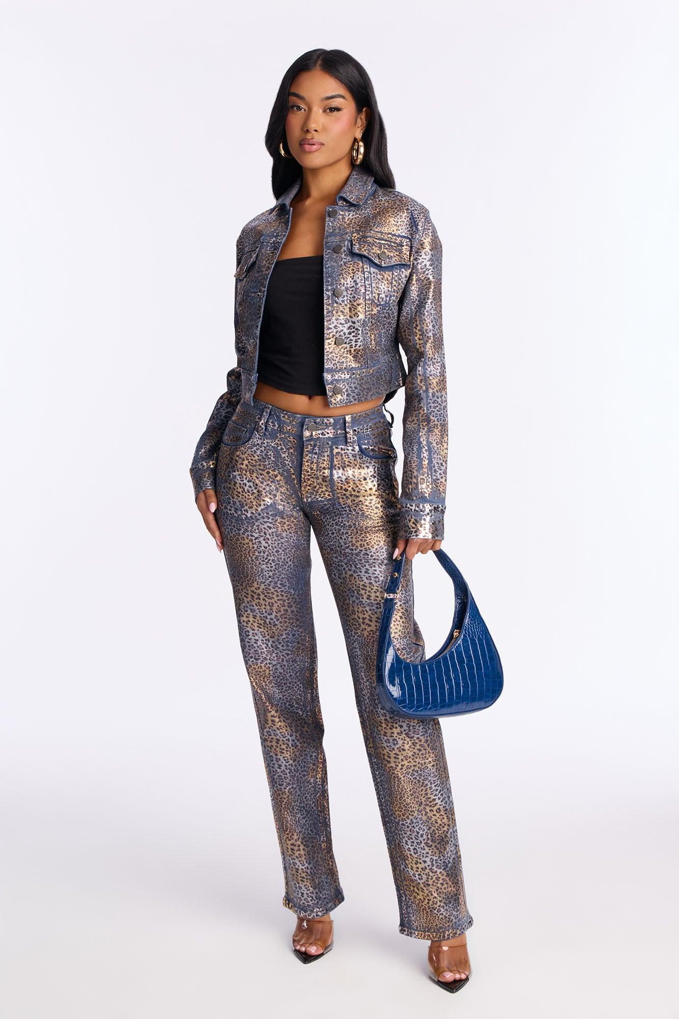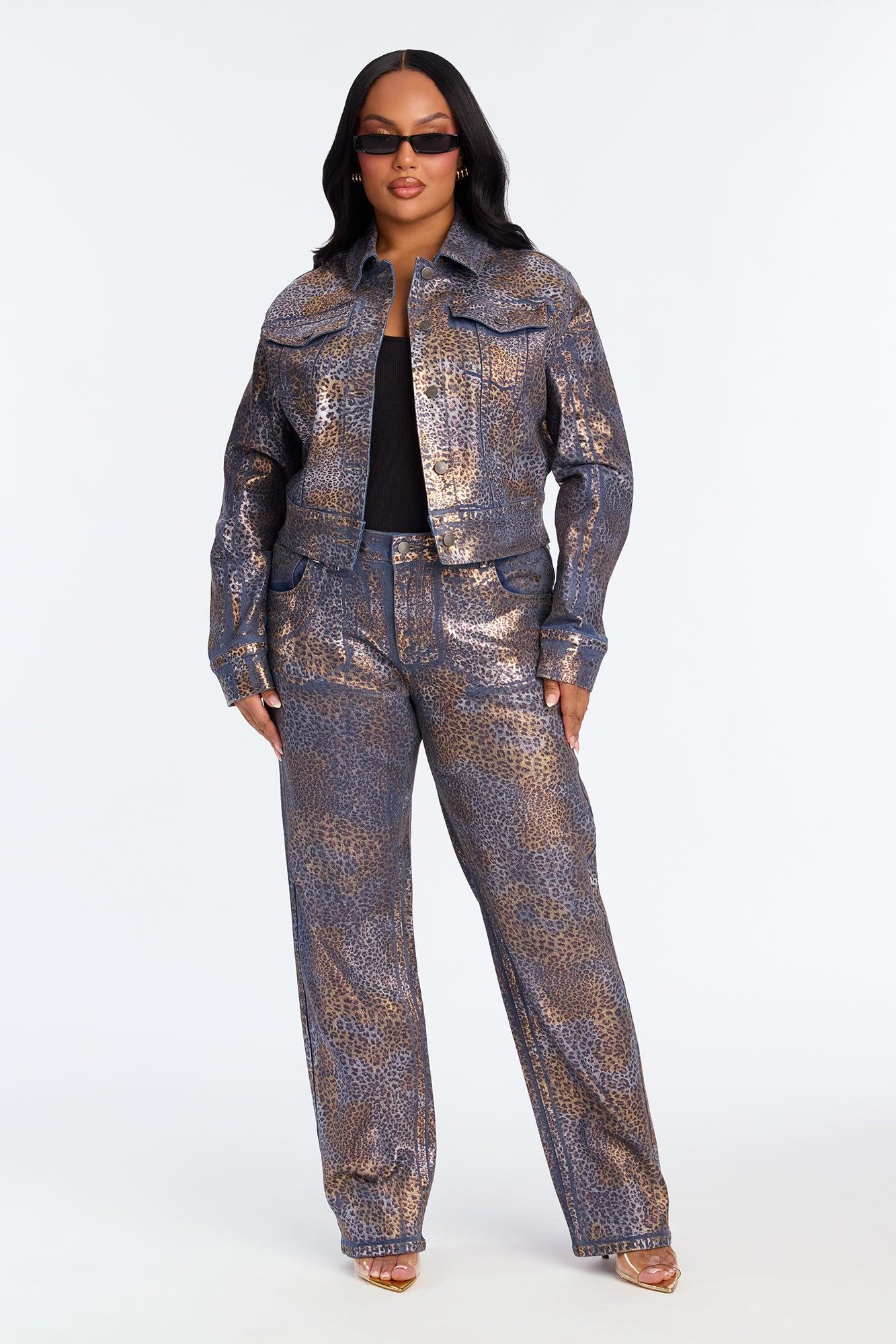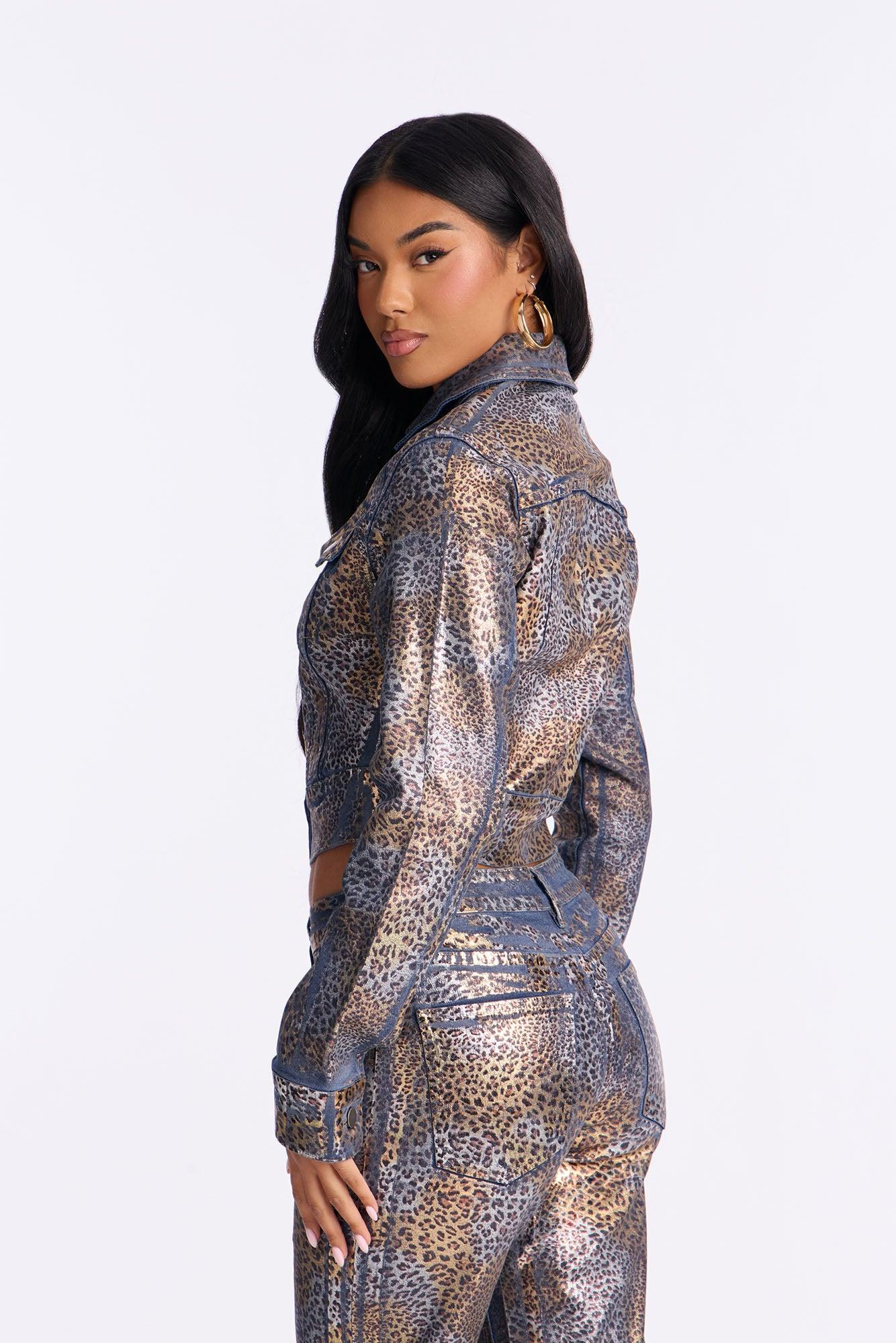 Available In Brown/combo. Denim Jacket Pair With Wild Side Leopard Foil Straight Leg Jeans To Complete The Look! Leopard Print Foil Button Closure Front Pockets Medium Stretch Self : 98% Cotton 2% Spandex Imported California Proposition 65WARNING: Cancer and Reproductive Harm - www.P65Warnings.ca.gov.