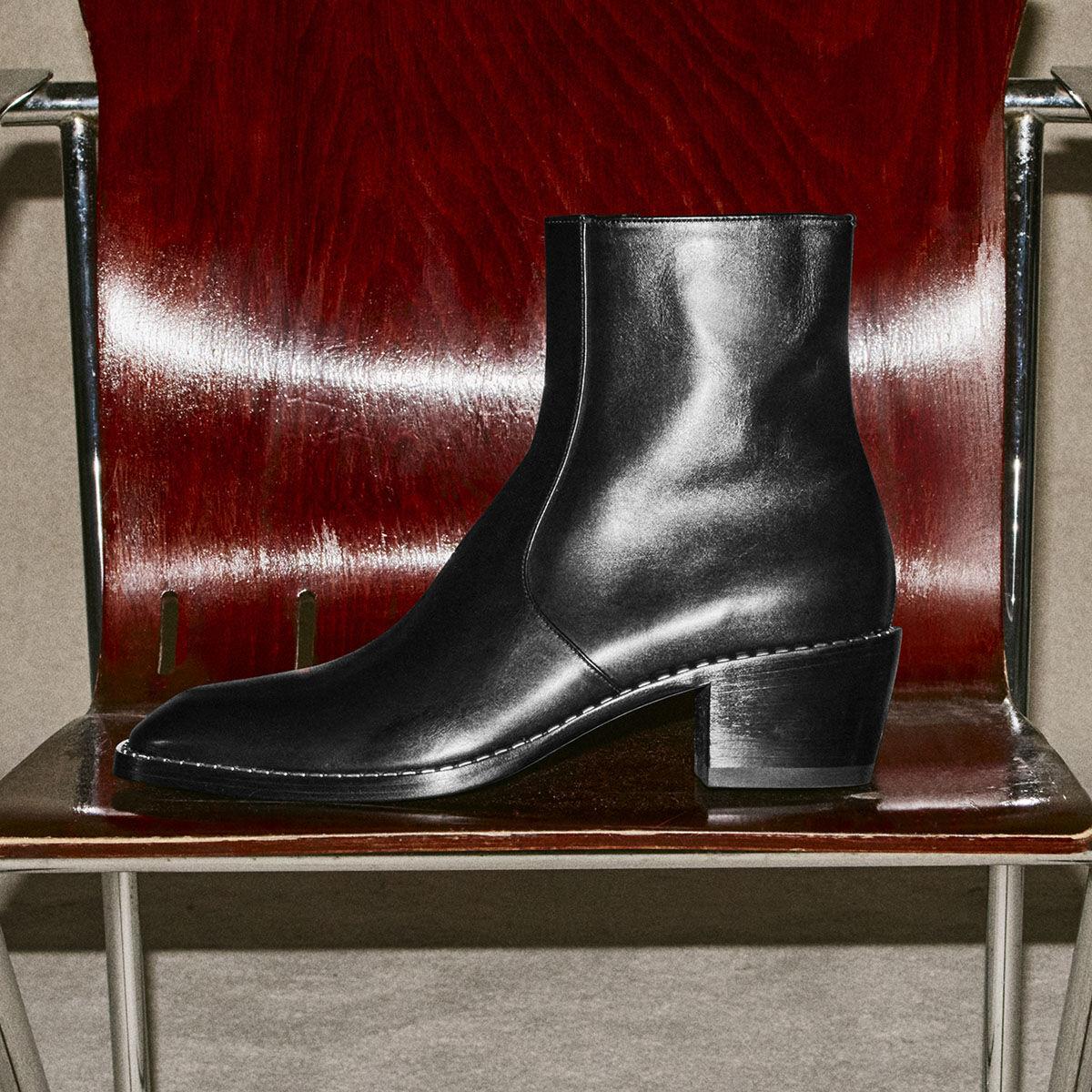 Black Calf Leather Ankle Boots with Metal Detail