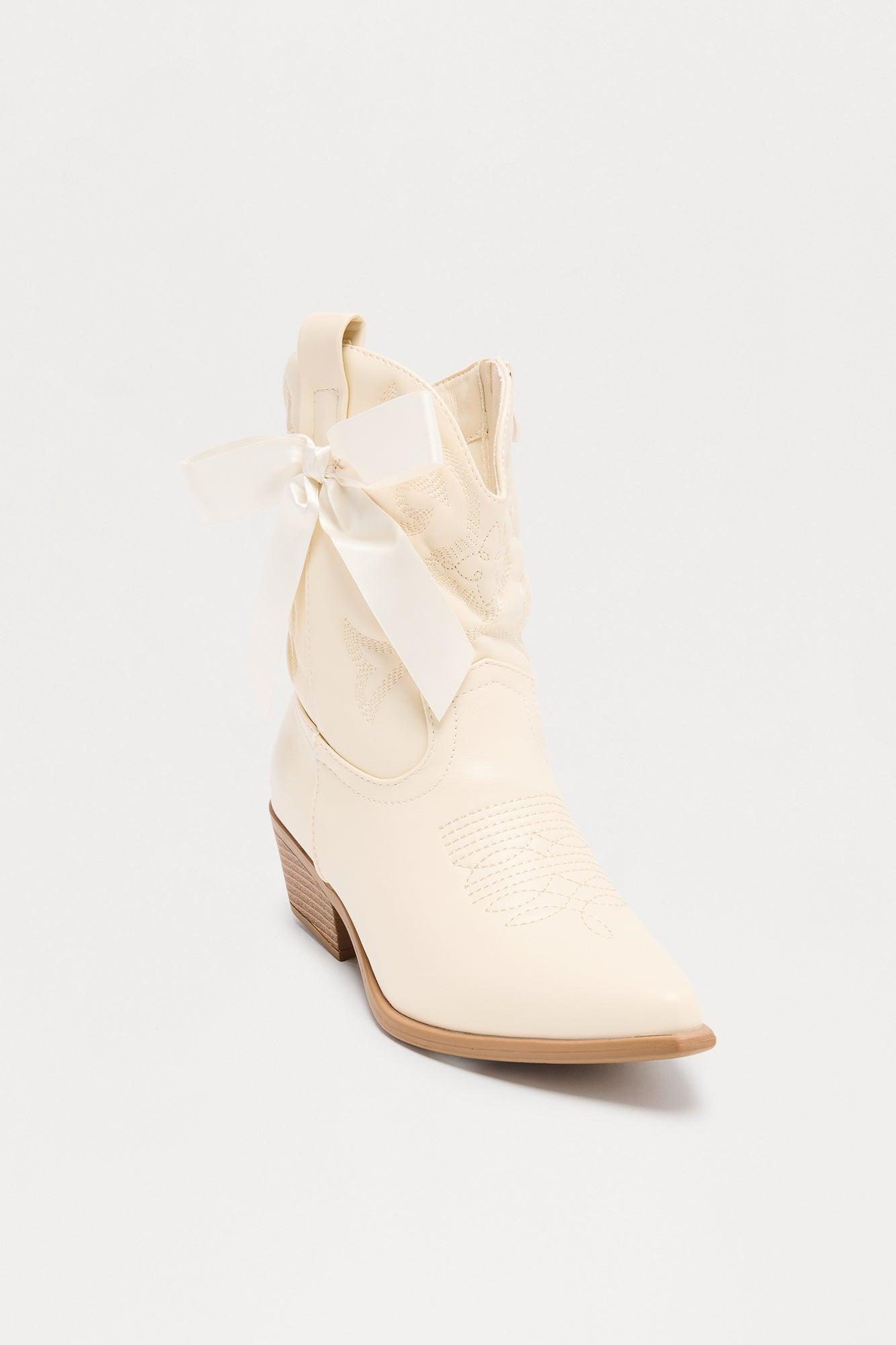 Willa Bow Cowboy Booties - Ivory Female