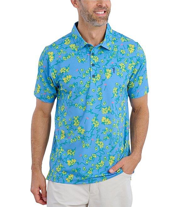 From William Murray, this shirt features: Allover print Polo collar Short sleeves Partial-button front Hidden logo detail Built-in sun protection Wrinkle-resistant, moisture-wicking four-way stretch fabric Polyester/spandex Melangé stretch jersey Machine wash/tumble dry Imported.