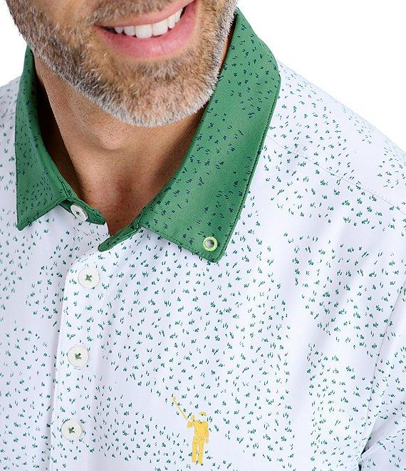 From William Murray, this shirt features: Allover print Polo collar Short sleeves Partial-button front WMG logo Built-in sun protection Wrinkle-resistant, moisture-wicking four-way stretch fabric Polyester/spandex Melangé stretch jersey Machine wash/tumble dry Imported.