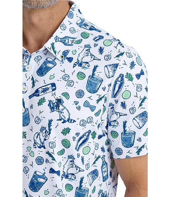 From William Murray, this polo shirt features:Allover raccoon printPoint collarShort sleeves4-button front placket4-way stretch fabricBuilt-in sun protectionWrinkle-resistant, moisture-wicking fabricSquare hemPolyester/spandex melangé knit fabricMachine wash/hang dryImported.