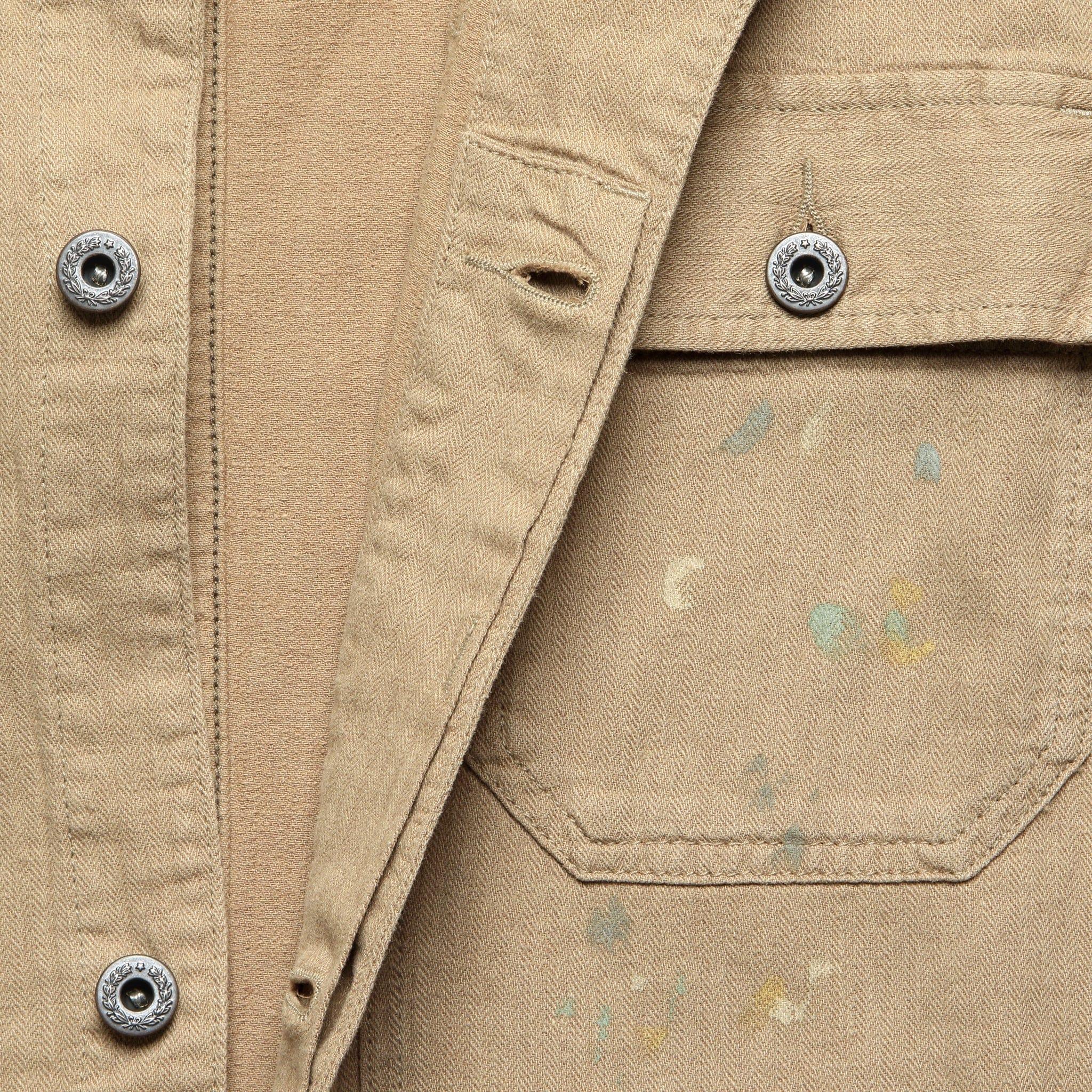 The Williams Coverall from Double RL is made with a lightweight, cotton-linen blend herringbone that’s been hand-distressed with subtle paint splatters and Sanforized to minimize shrinkage. It has a relaxed-fitting silhouette that runs true to size and comes with American-made metal buttons, two center-front side-entry pockets, a single left chest pocket, two front angled waist pockets, utility pockets, and a concealed front button placket to seal the deal. Lightweight cotton-linen blend Hand-distressed with paint splatters Sanforized to minimize shrinkage American-made metal buttons Two center-front side-entry pockets Two angled waist pockets Utility pockets Concealed front button placket Drawstring hems Relaxed fit that runs true to size We recommend taking your normal size Materials: 55% linen, 45% cotton The following measurements are for size Medium: Chest: 44” | Shoulder: 18” | Sleeve: 34” | Length: 20” | Waist: 40” | Thigh: 12” | Rise: 14” | Inseam: 26” | Leg opening: 16”