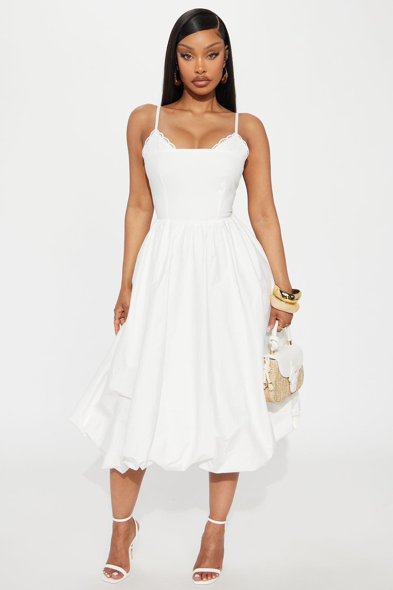 Willow Poplin Bubble Midi Dress - Off White