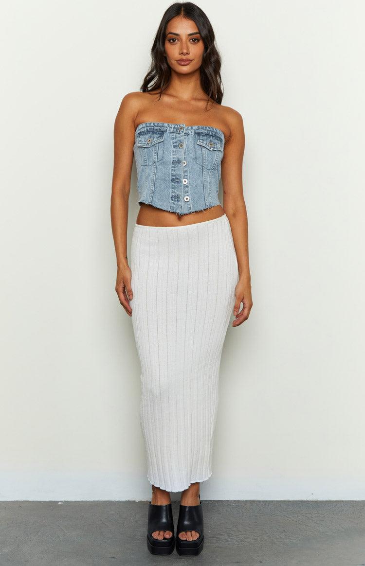 Denim Strapless Button Top HOW TO STYLE: This stunning strapless denim crop top is a must for your next festival! Go for a denim on denim look by pairing the top with a denim mini skirt to turn heads. Finnish off this festival look with cowboy boots and your favourite accessories! FEATURES: Raw hemline Corset detailing Imitation pockets Buttons down front Straight neckline Strapless cropped length Unlined Mid weight denim Non stretch