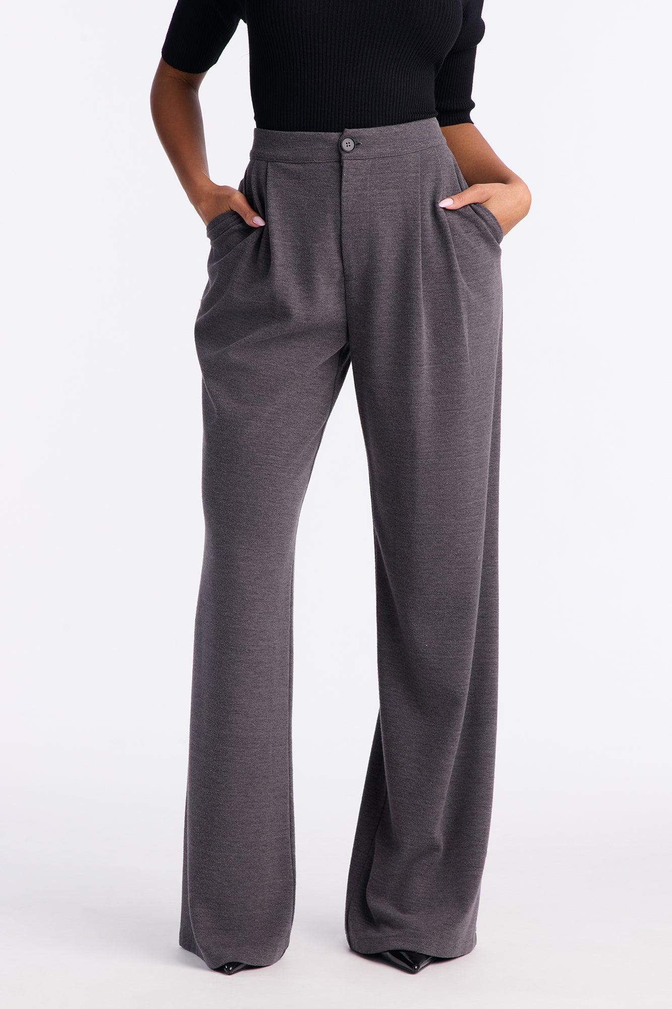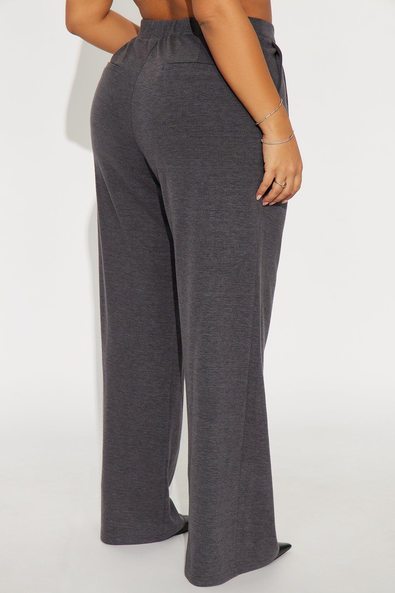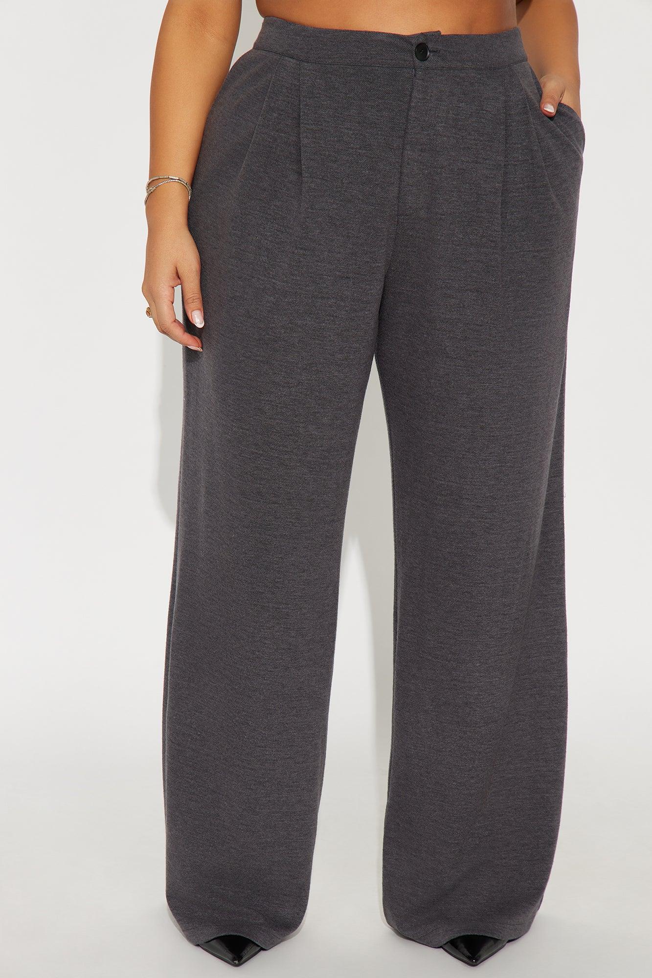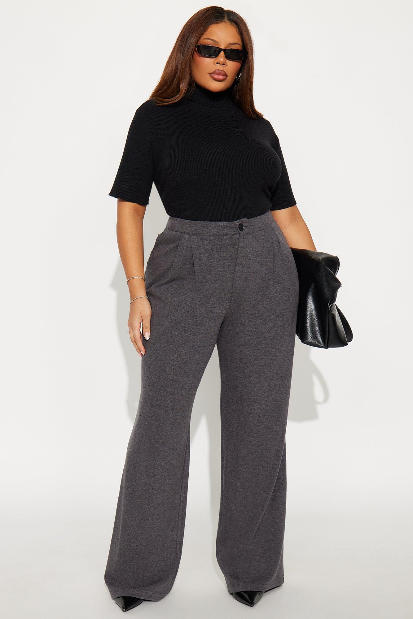 Available In Charcoal And Chocolate. Trouser Pants Button And Zipper Closure Pleated Detail 33" Inseam Wide Leg Faux Back Pockets Self : 54% Polyester 31% Rayon 12% Nylon 3% Spandex Imported California Proposition 65WARNING: Cancer and Reproductive Harm - www.P65Warnings.ca.gov.