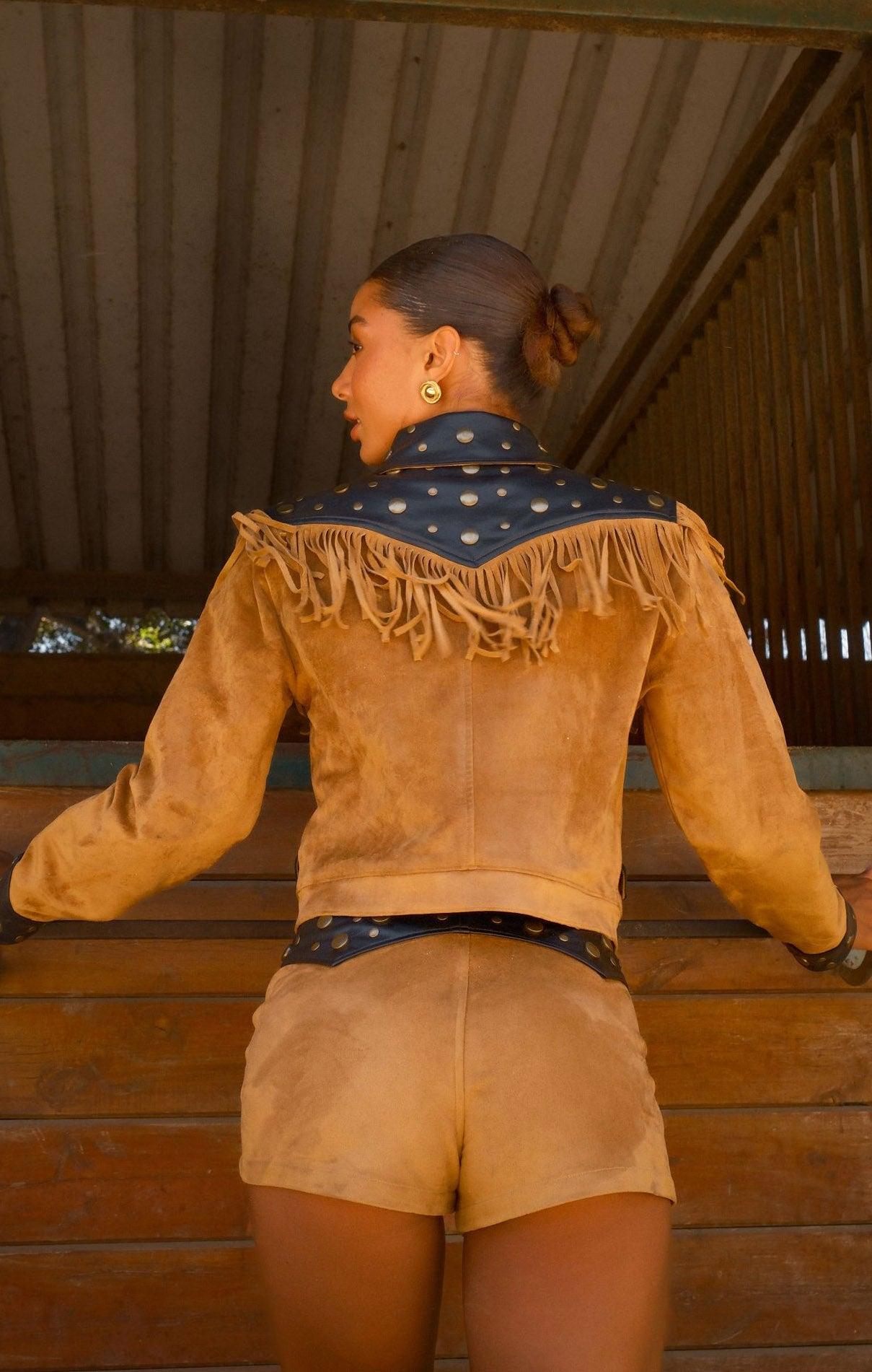 Wilson Shorts ~ Sepia Faux Suede Faux Leather