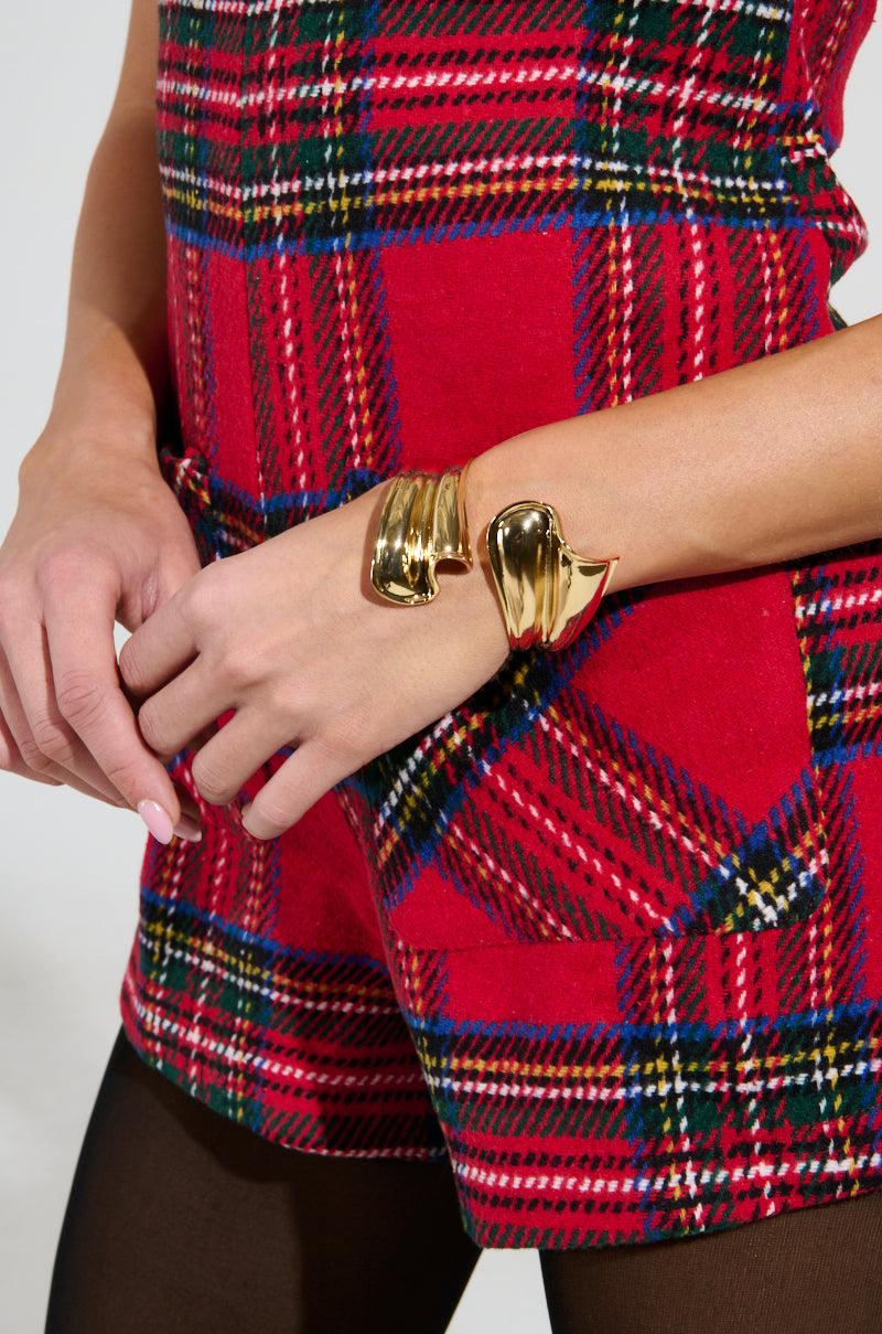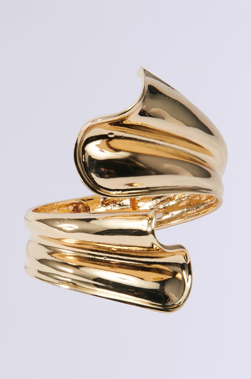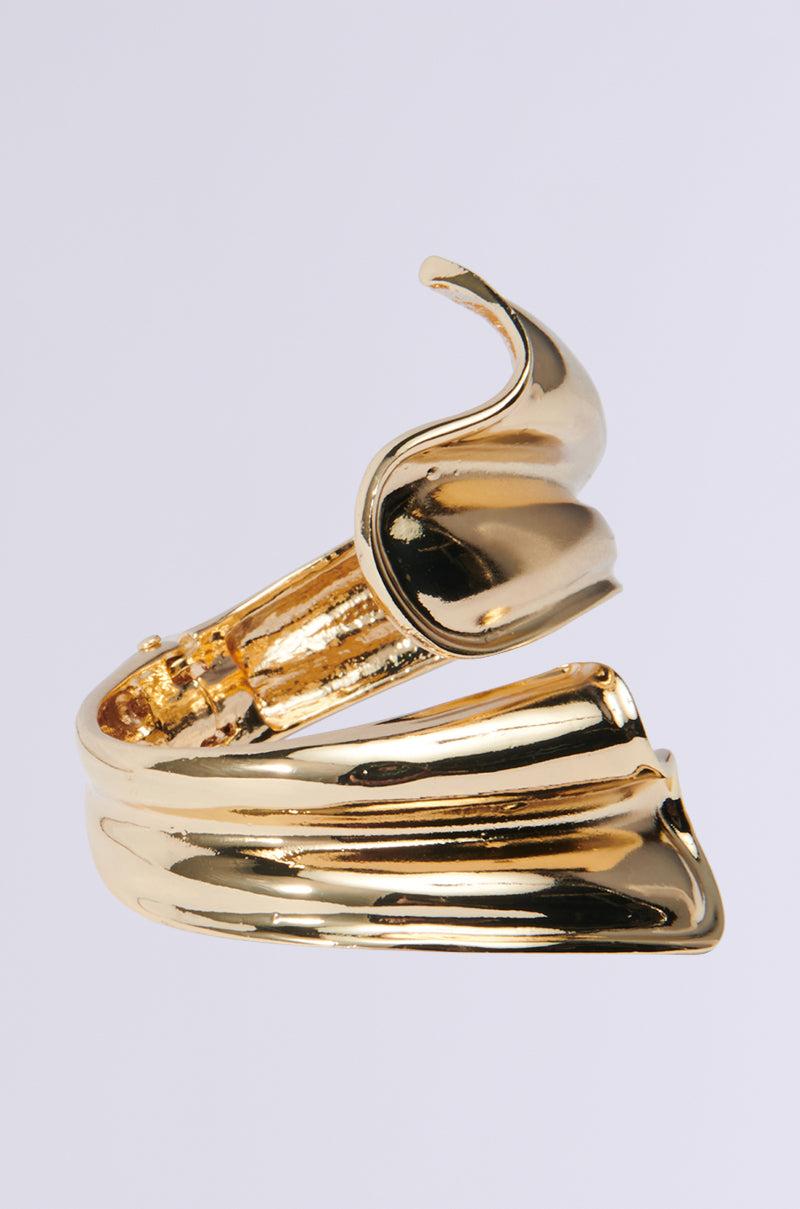 Show off your stuff in The AKIRA Label Wind It Up Bracelet. This classic accessory is crafted from a faux gold metallic base and features a textured, abstract design with a wraparound cuff silhouette, a hinged base, and a one-size-fits-most design. Pair with an evening dress and stilettos for a classy finish. - 100% Man-Made Materials (all measurements approximate from size O/S)- 8” Circumference- Imported Product ID: 472484