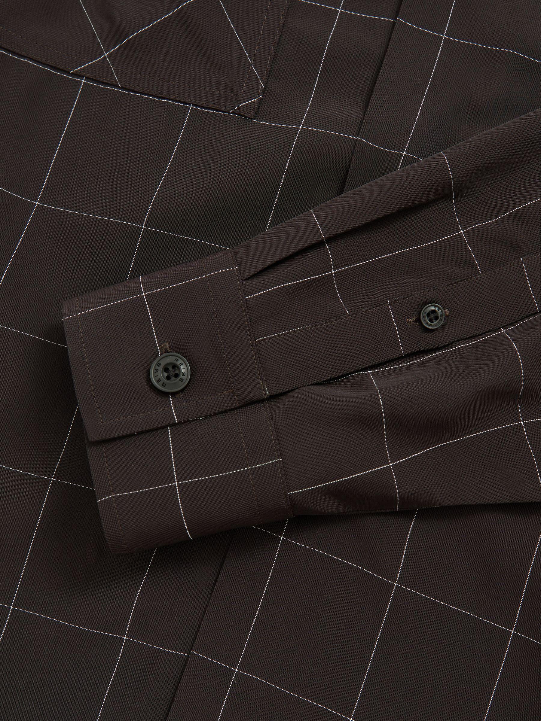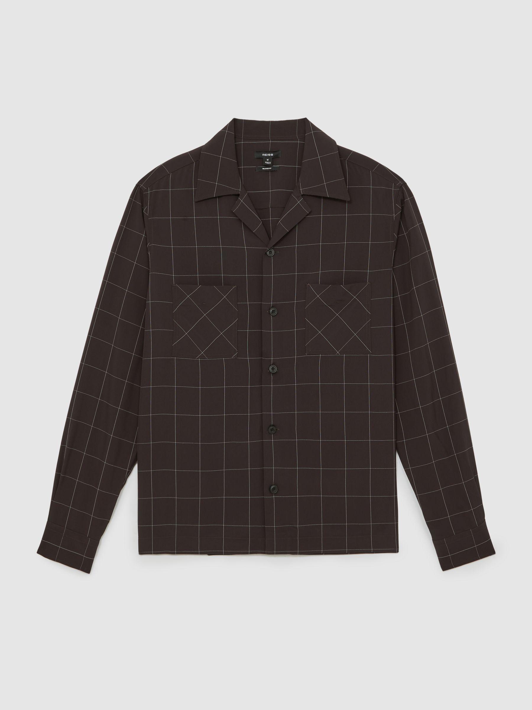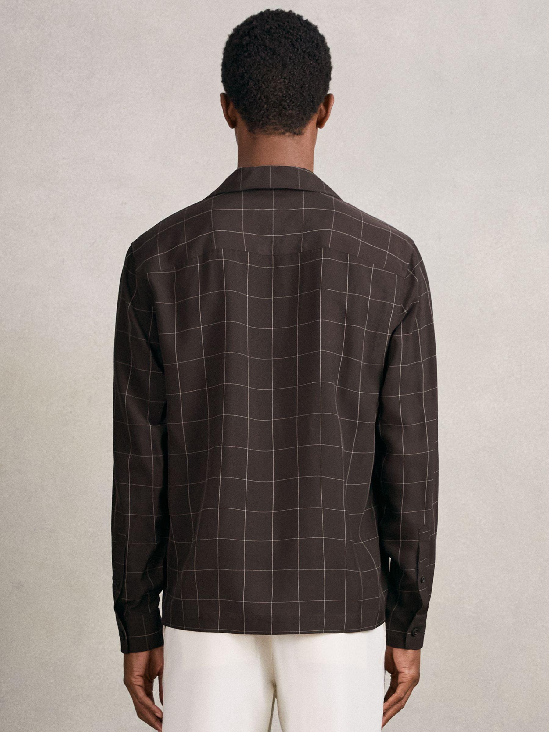Windowpane-Check Cuban-Collar Shirt in Dark Brown