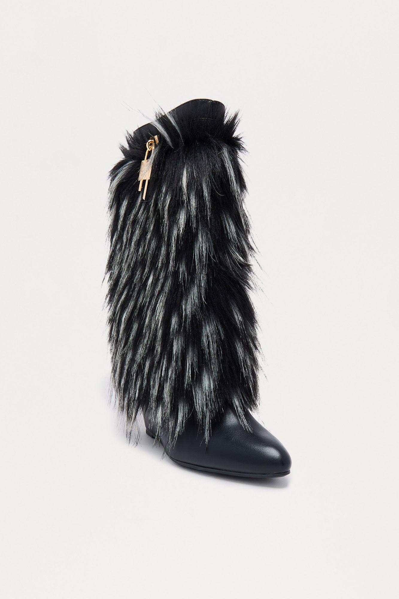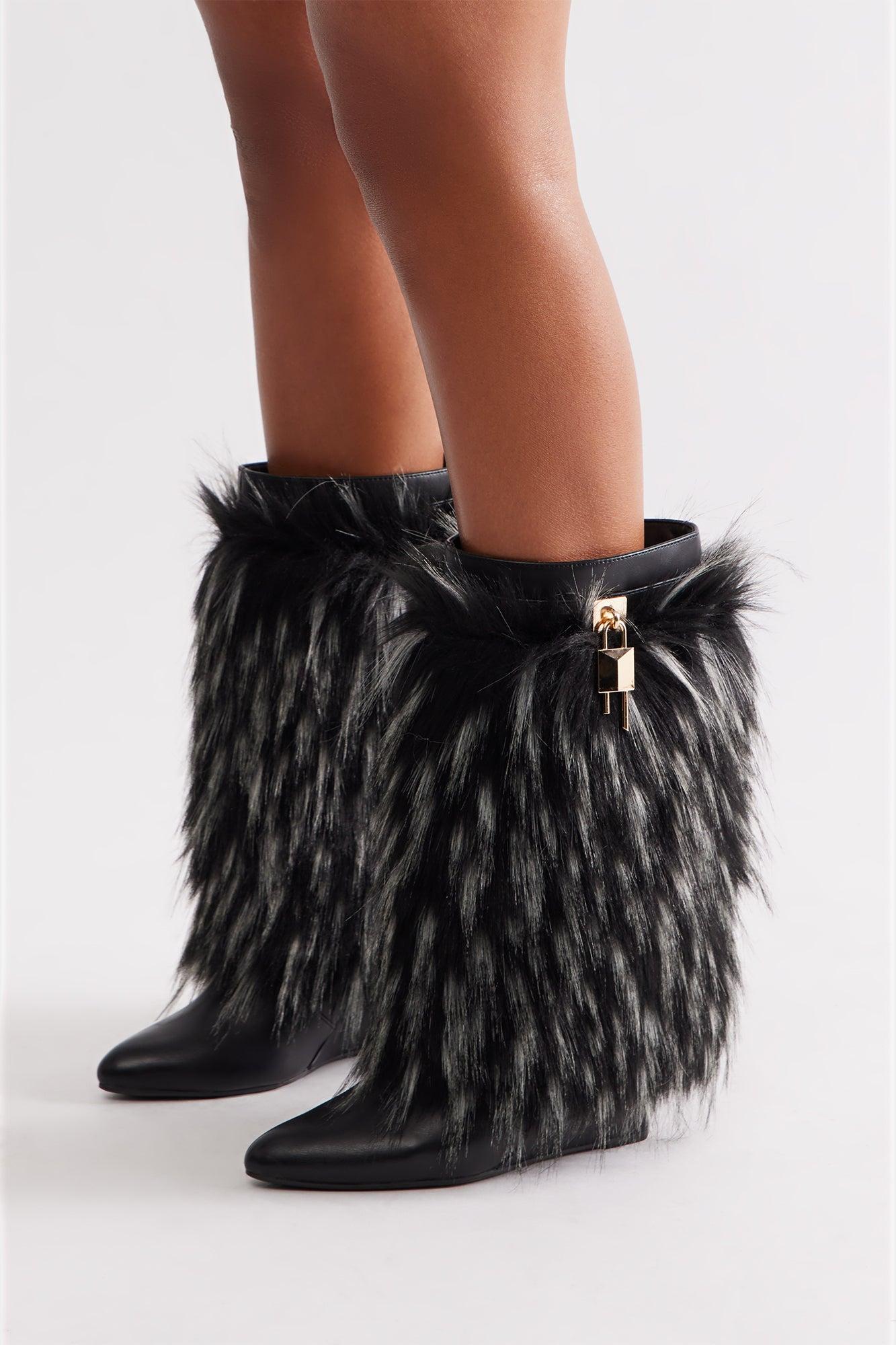 Windy Hardware Faux Fur Boots - Black Female