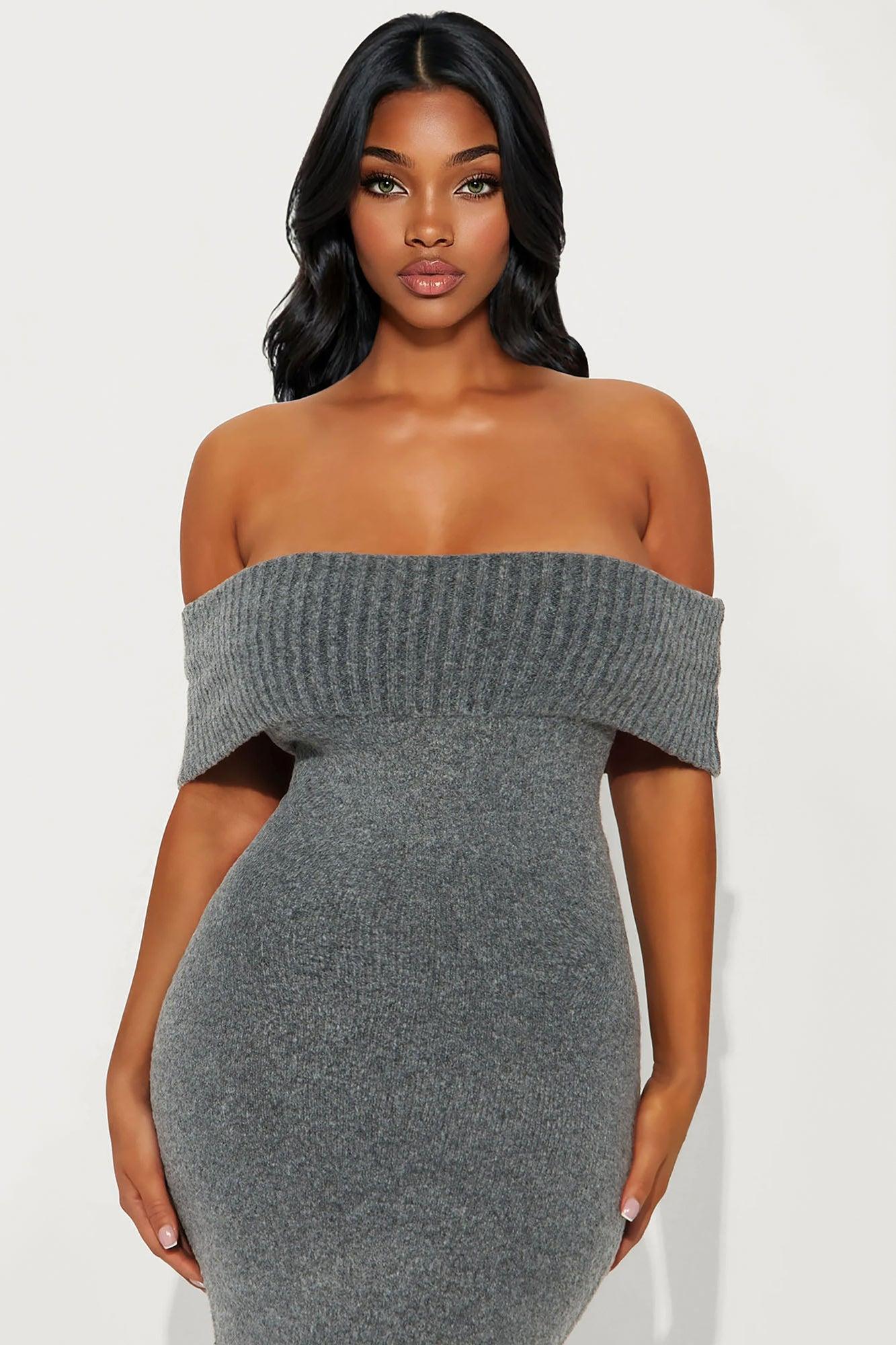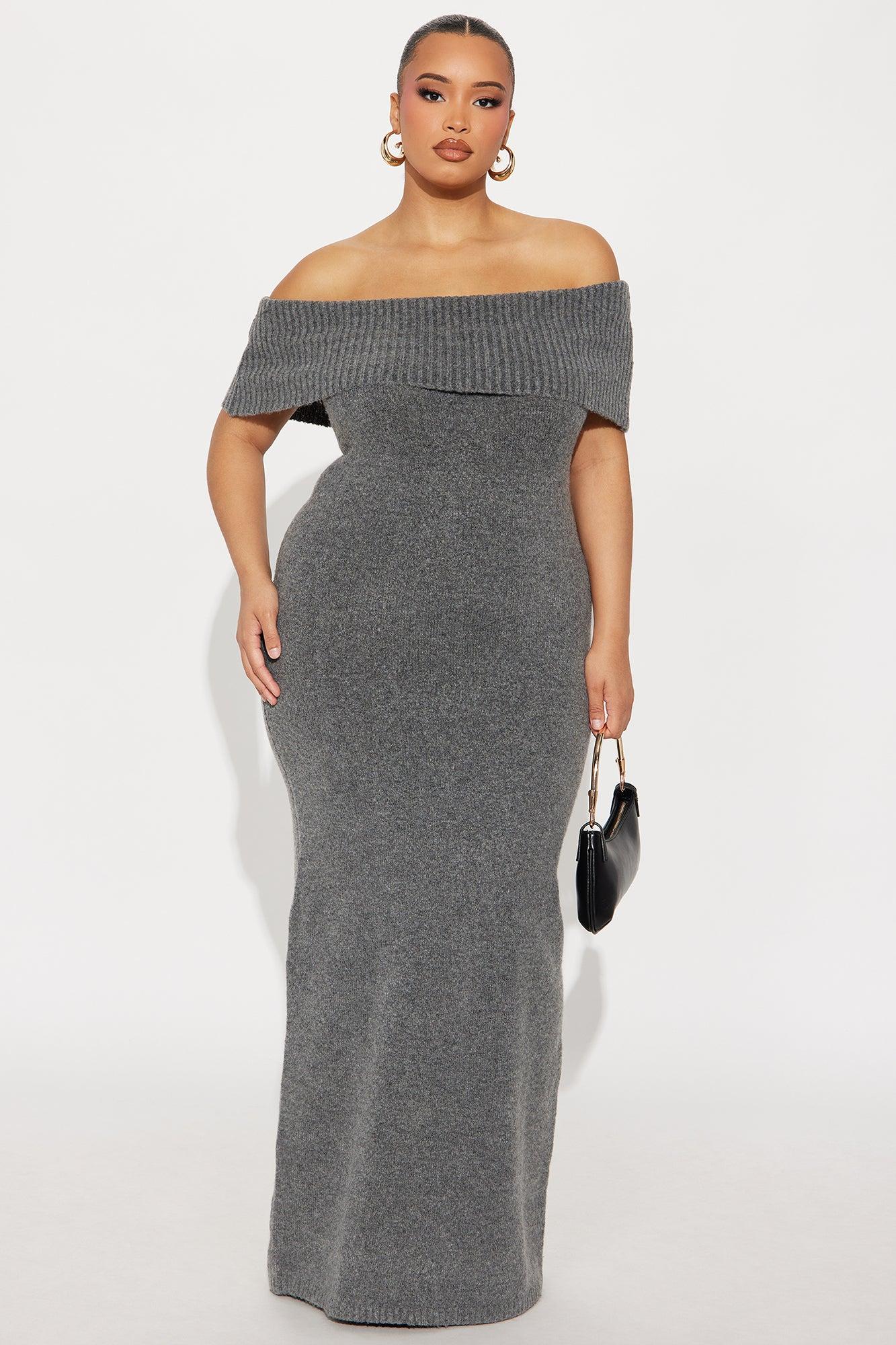 Wine Night Sweater Maxi Dress - Charcoal Female