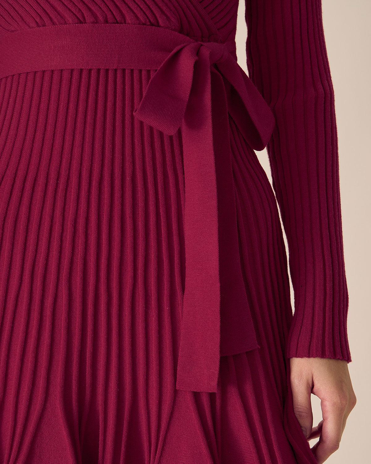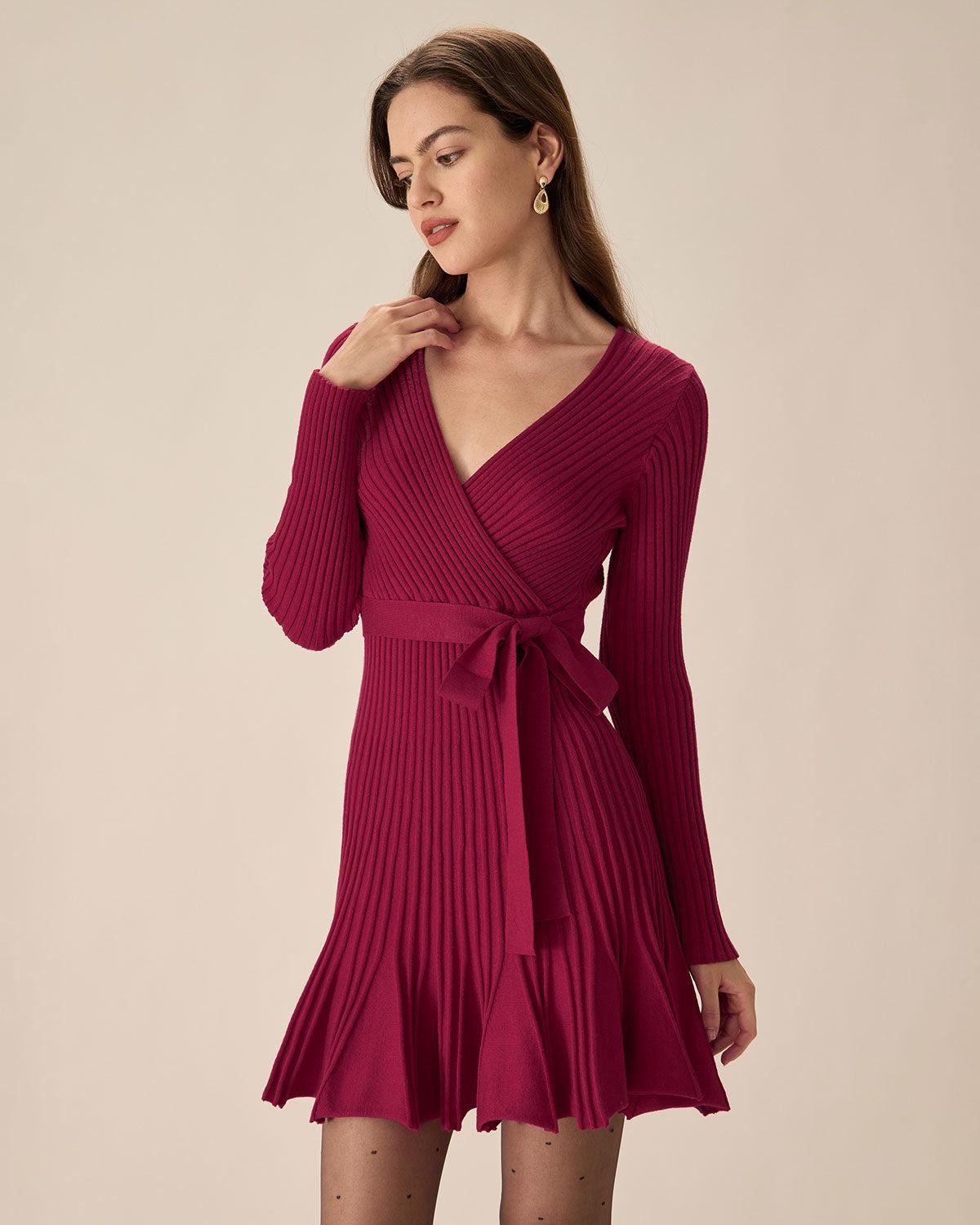 Fabric:This Sweater Mini Dress is made of Viscose, Polyester, and Nylon. Viscose (aka rayon) is a man-made cellulosic fiber made from wood pulp. It's soft, breathable, durable, and moisture-wicking. Nylon is a flexible synthetic fiber, waterproof, and can take rubbing and scraping without wearing away. Description:Made from a soft, knitted fabric, it features a flattering wrap design that cinches at the waist, creating a feminine, hourglass silhouette. The rich wine red color adds a touch of sophistication, while the mini length offers a playful yet elegant look. Details:- Occasion: Daily- Fabric Stretch: Medium Stretch- Embellishment: Ribbed, Tie- Dress Type: Wrap- Silhouette: A-Line- Fabric: Viscose 50.0%, Nylon 28.0%, Polyester 22.0%