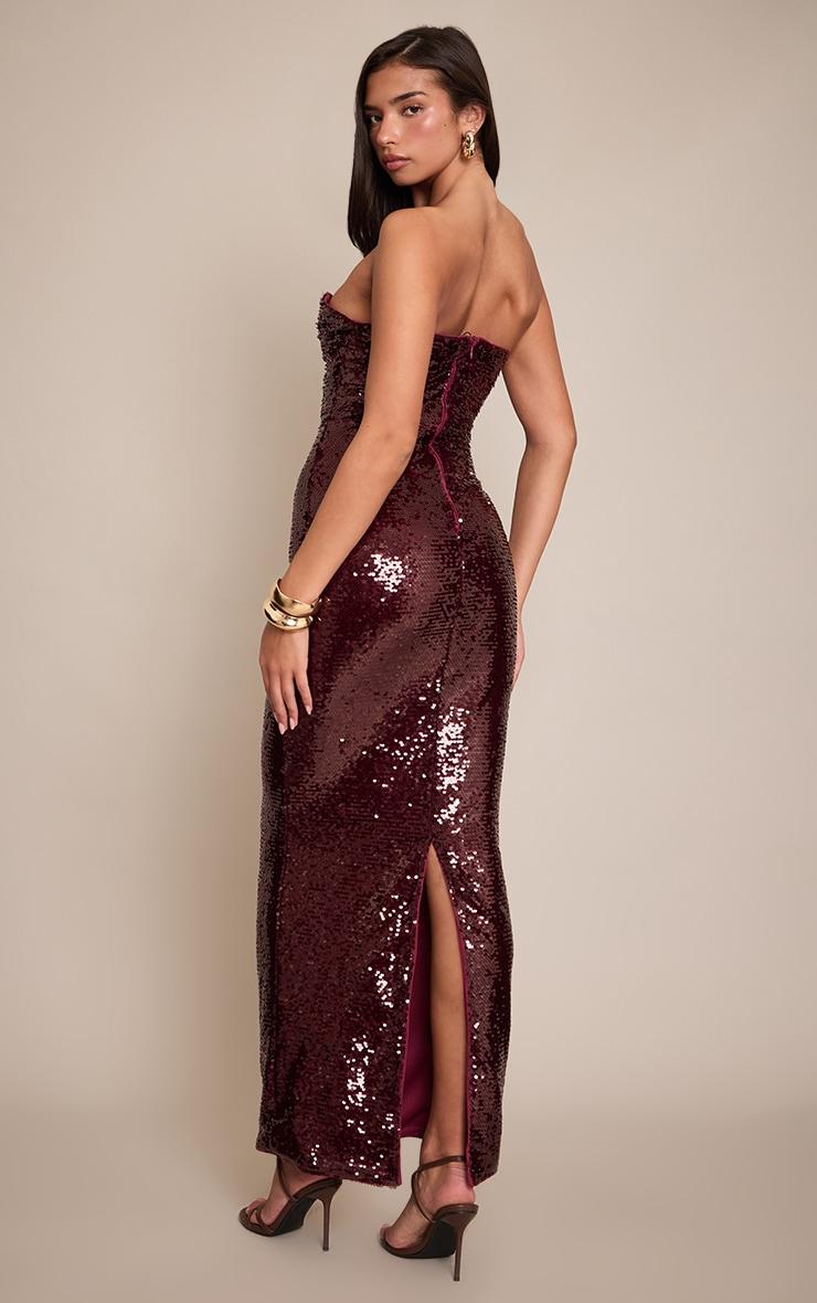 Own the night in this wine sequin wire cup detail maxi dress. Showcasing a wine sequin design, this bodycon maxi features a strapless deep V wire cup detail. The definitive choice for unforgettable evening celebrations. Pair with sleek high heels and statement rings for a confident finish.Length approx 124.5cm/49inch (Based on sample size US 4)Model wears size UK 8/ EU 36/ AUS 8/ US 4Model Height - 5ft 8inchp]:!mb-4inch>Brand: PrettyLittleThingCategory: DressesProduct type: Bodycon DressColor: WineMaterial: SequinOccasion: Occasion