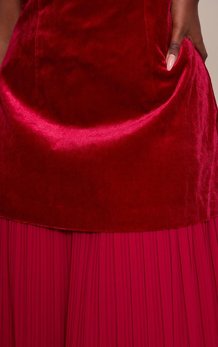Step into the spotlight with an undeniable elegance. The wine velvet bandeau pleated chiffon skirt panel maxi dress is crafted for occasion wear, featuring a confident strapless bandeau neckline. Its rich wine velvet top is designed with a sculpted bodice and an artful panel detail that defines the waist, transitioning seamlessly into a flowing pleated chiffon maxi skirt. This maxi dress creates a dynamic silhouette, perfect for making a sophisticated entrance. Complete your look with sharp black heels and a touch of delicate silver jewelry to enhance the bare neckline. It's a definitive choice for a truly refined aesthetic.Length approx 145cm/57inch (Based on sample size US 4)Model wears size UK 8/ EU 36/ AUS 8/ US 4Model Height - 5ft 5inchp]:!mb-4inch>Brand: PrettyLittleThingCategory: DressesProduct type: Shift DressColor: WineMaterial: VelvetOccasion: Occasion