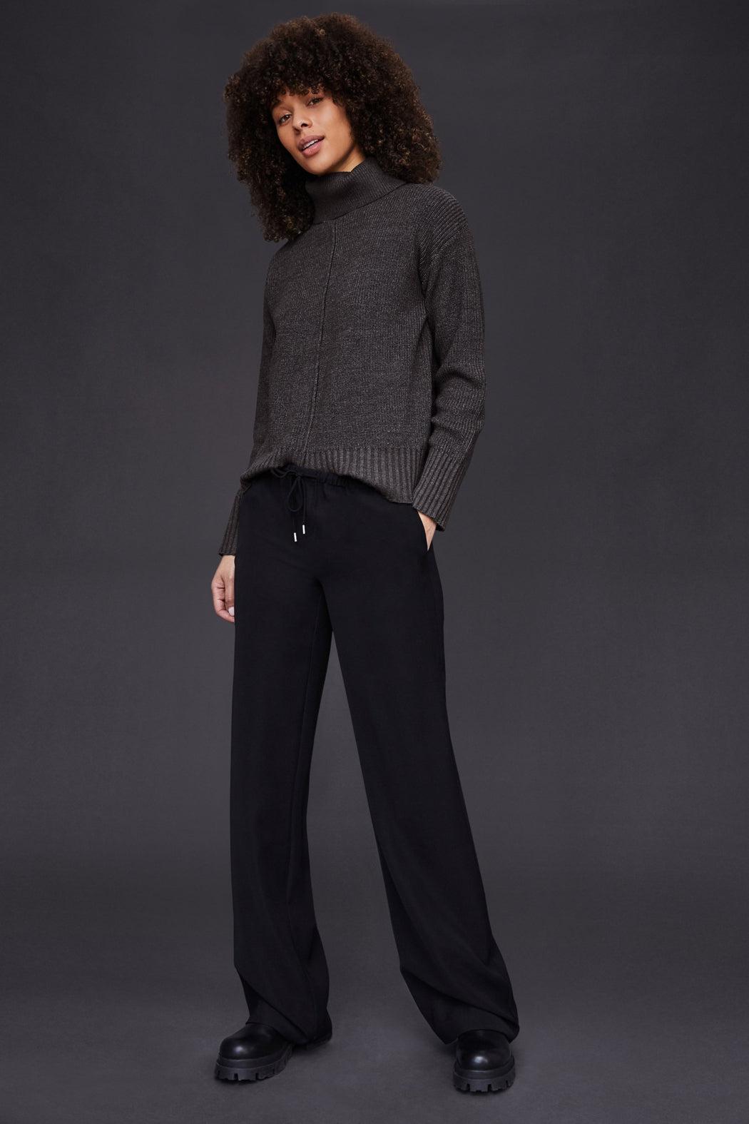 The Winnetka drawstring easy pant in a Crepe has a longer and slightly wider leg shape. We think it could be this fall's favorite work from home-to-weekend style. Draw string waist with front clasp and zipper Front side seam pockets Back besom pockets 100% Polyester