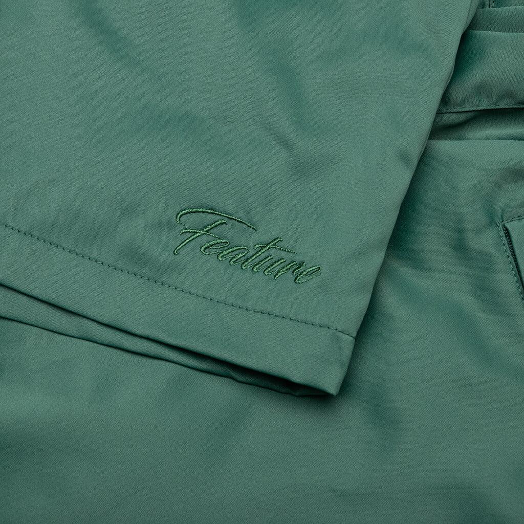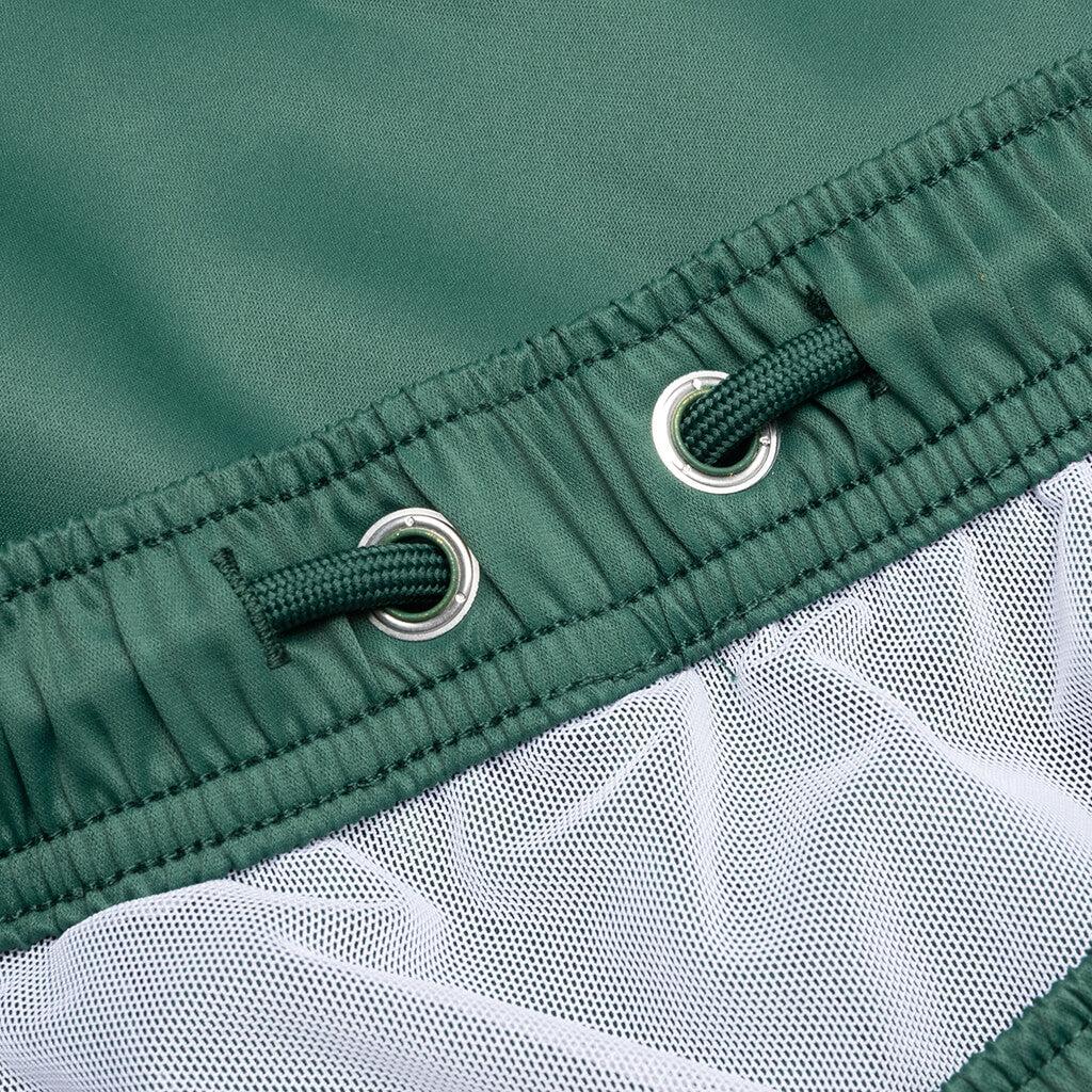 The Winslow Swim Trunk in Forest Green is crafted from Polyester, offering a lightweight and durable construction. It features a comfortable Polyamide lining and an elasticized waistband with a drawstring for a secure fit. The swim trunk is equipped with zip side seam pockets and two zip back pockets, providing practical storage for small essentials. Perfect for days by the water, this piece combines functionality with a sleek design. 100% Polyester Polyamide lining Elasticized waistband Drawstring Zip side seam pockets Two zip back pockets Style No: F071724X04