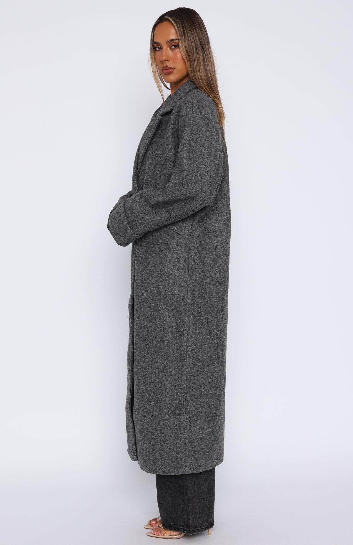 As the seasons change layer up in the Winter Holiday Oversized Coat in Charcoal! Features collar neckline, slouched shoulders, long sleeve with cuff detailing, button closure centre front, pockets side front and back leg split. Complete the look with your favourite White Fox denim jeans and long sleeve for the perfect cosy fit. Mik is 171cm & wears a S/M