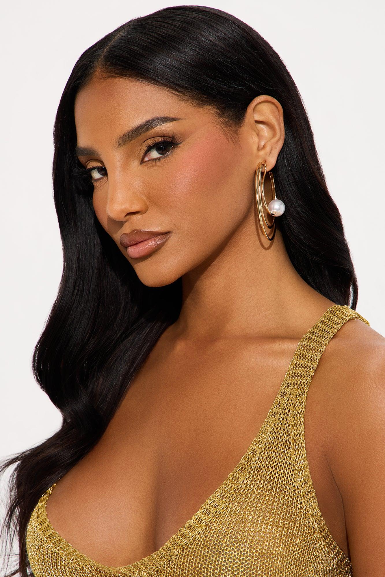 My Rhinestones And Pearls Hoop Earrings - Gold Female