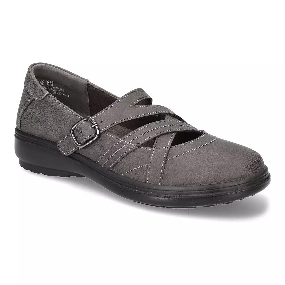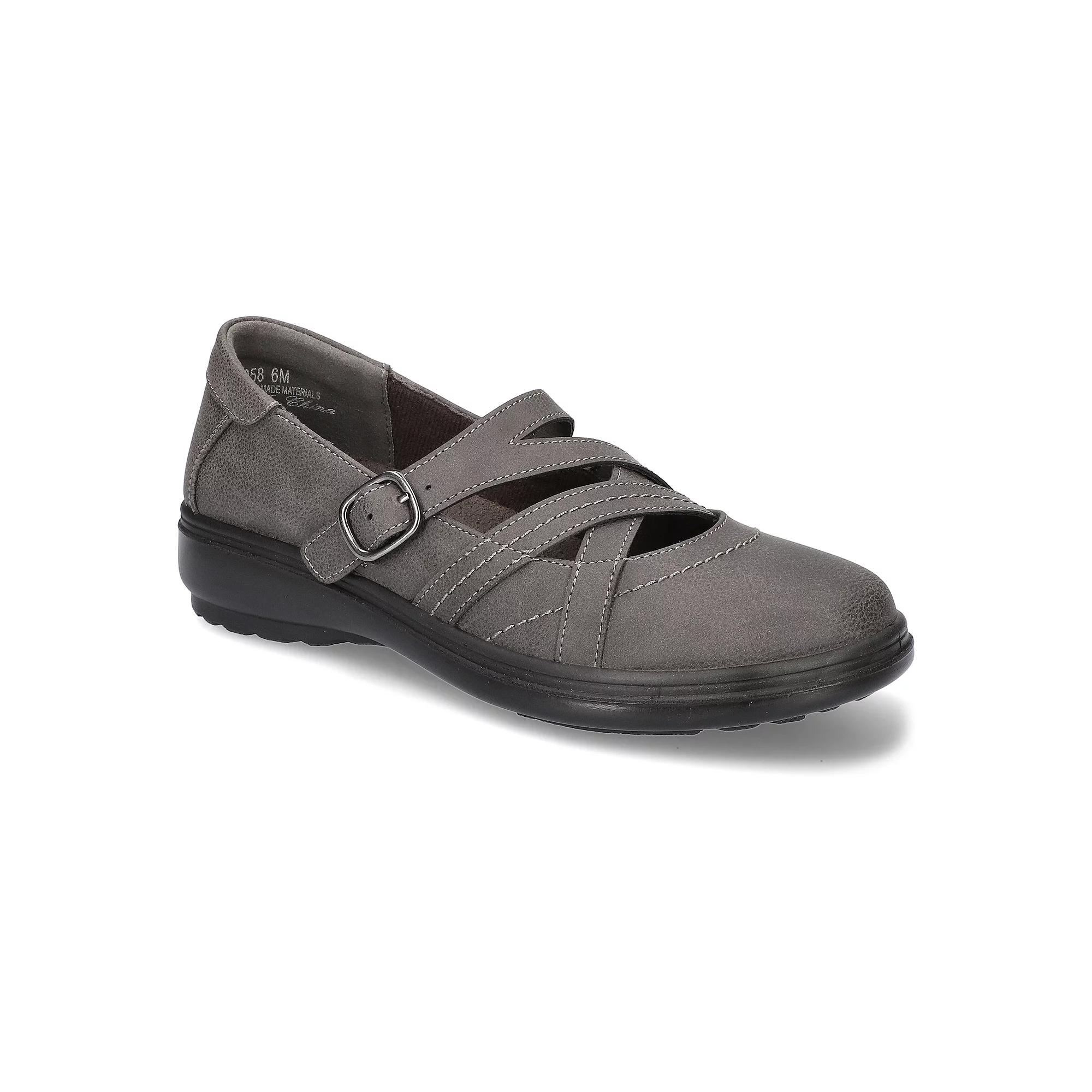 Take a classic design and innovate it to meet your modern needs. The Wise by Easy Street offers a contemporary asymmetrical mary jane design. Click this FOOTWEAR GUIDE to find the perfect fit and more! - https://www.kohls.com/feature/shoesizeguide.jsp. SHOE FEATURES: Enhanced with an Easy Street Comfort Wave construction, an Easy Motion ultra-light insole and stretch for fit features to provide all day comfort, The gored adjustable buckle closure will help provide a more custom fit. SHOE CONSTRUCTION: Manmade (PU) outsole, Fabric lining, Synthetic upper. SHOE DETAILS: Spot clean, Round toe, Foam footbed, Buckle closure, 3/4-in. heel height. Size: 8.5. Color: Gray. Gender: female. Age Group: adult.