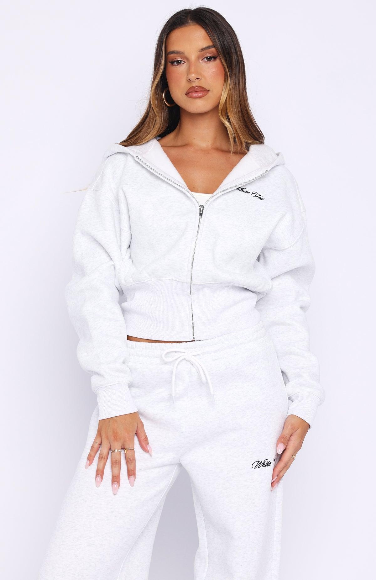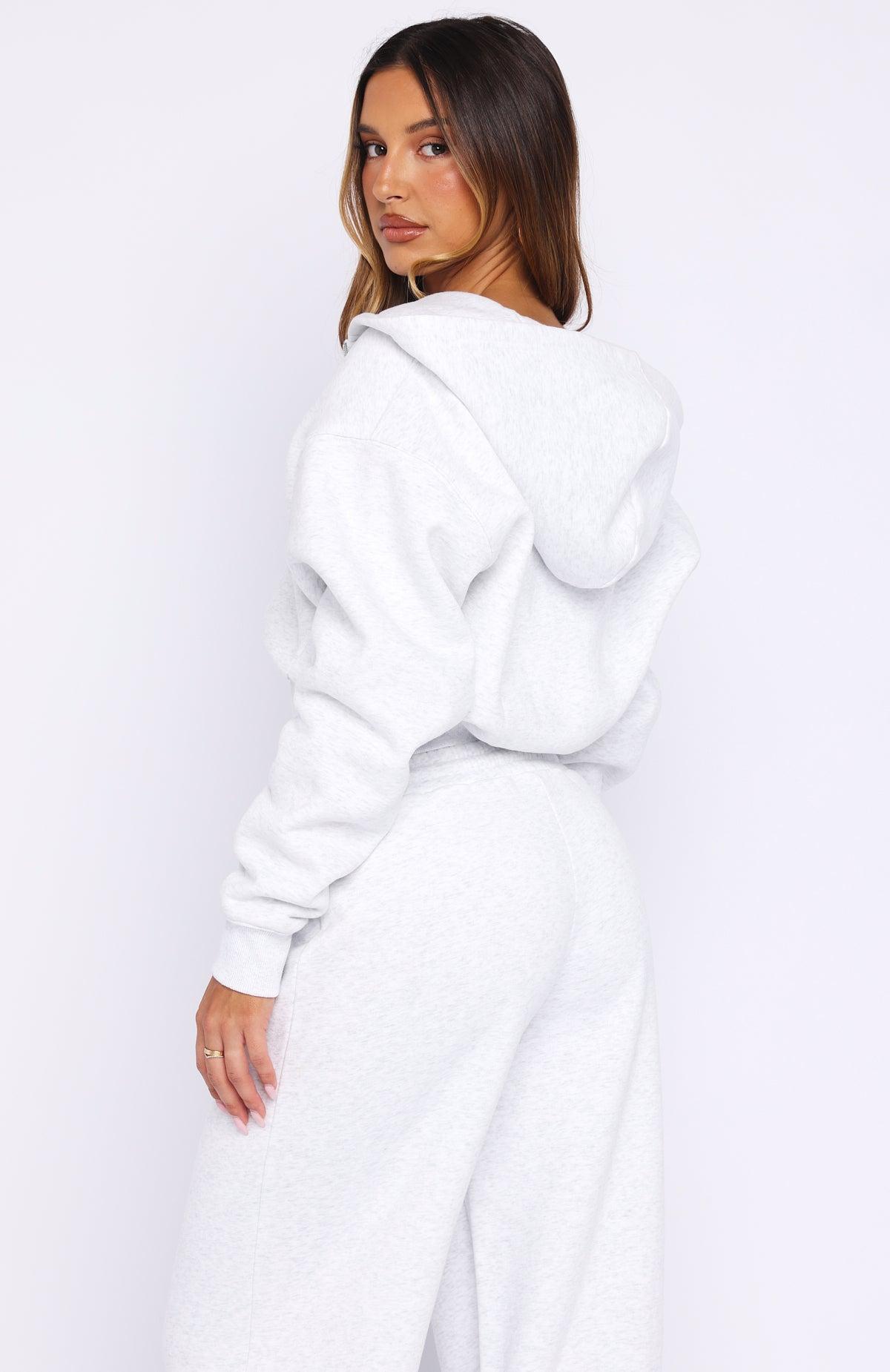 Perfect for lounging or running errands, the Wishing For It Cropped Cinched Zip Front Hoodie Grey Marle is here to keep you comfy. Featuring a centre front zip closure, elasticated ribbed cuffs & ultra thick hem, hood, soft fleeced fabric for extra comfort, cropped length and embroidered logo detailing side front. - Hood - Relaxed Fit - Long Sleeves - Cropped Length - Ribbed Cuffs - Thick Ribbed Hem Band