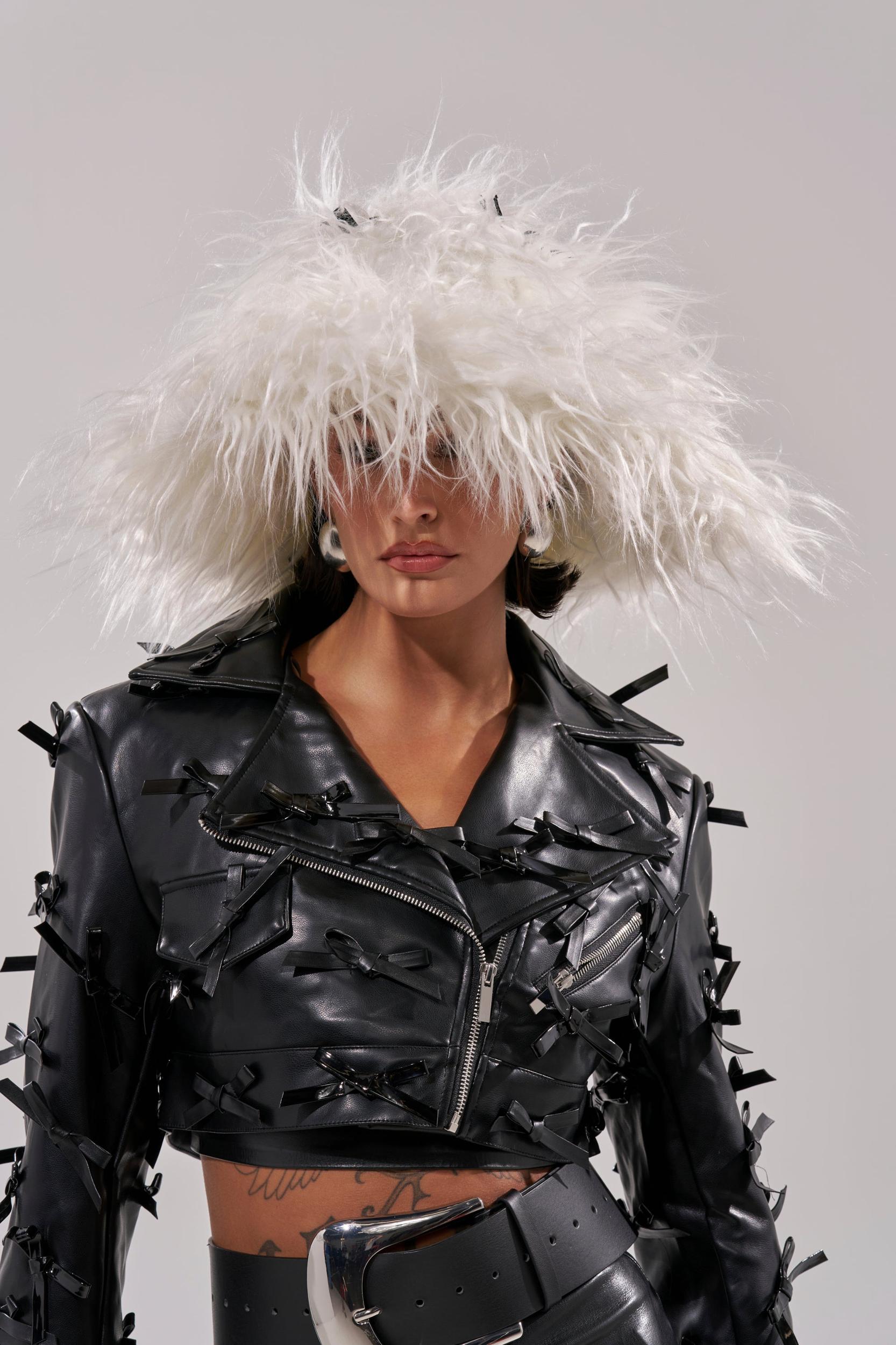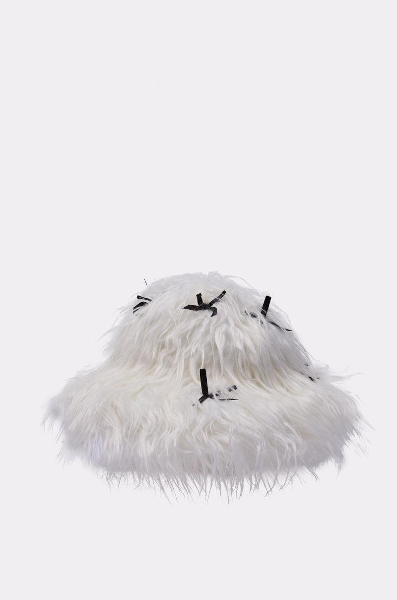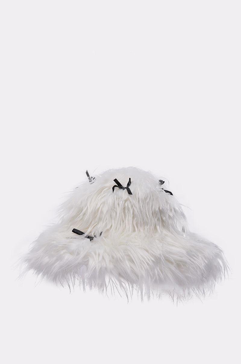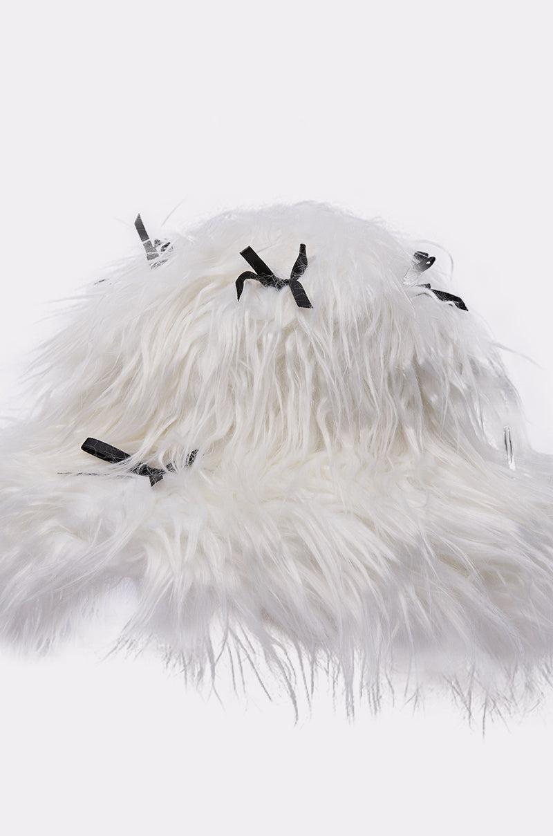 Get winter-ready with The AKIRA Label With A Bow Faux Fur Bucket Hat. This coquette accessory is crafted from lavishly plush faux fur, and features an oversized, floppy bucket hat silhouette with a slightly domed crown, a wide curved brim, and adorned with black satin bow appliques throughout. Complete with a sleek inner lining to keep those pesky flyaways at bay. - Faux Fur Shell: 100% Polyester, Lining: 100% Polyester- Dry Clean Only- Imported (all measurements approximate from size O/S)- 26” Head Circumference- 10” Head DiameterProduct ID: 1071441