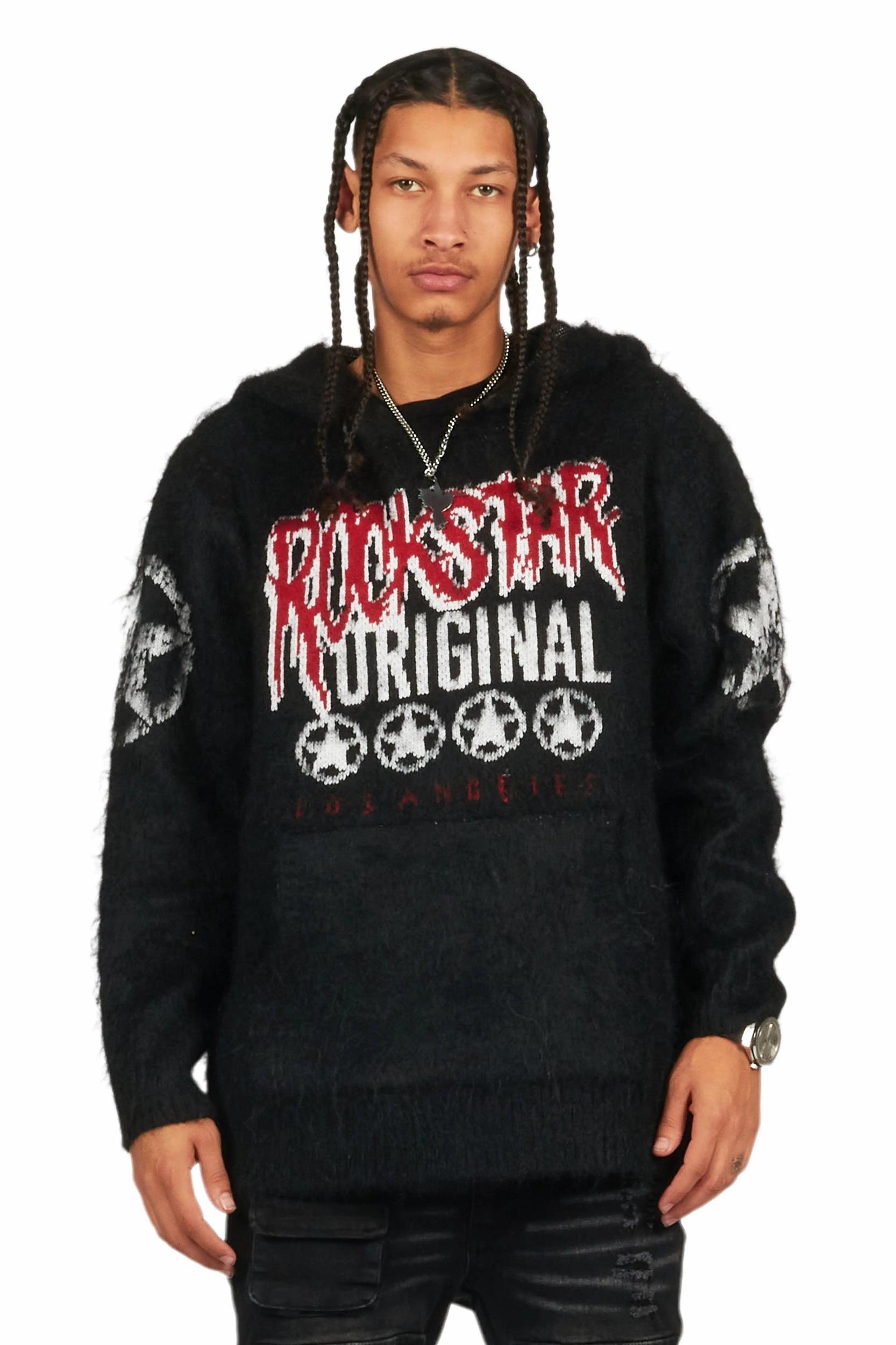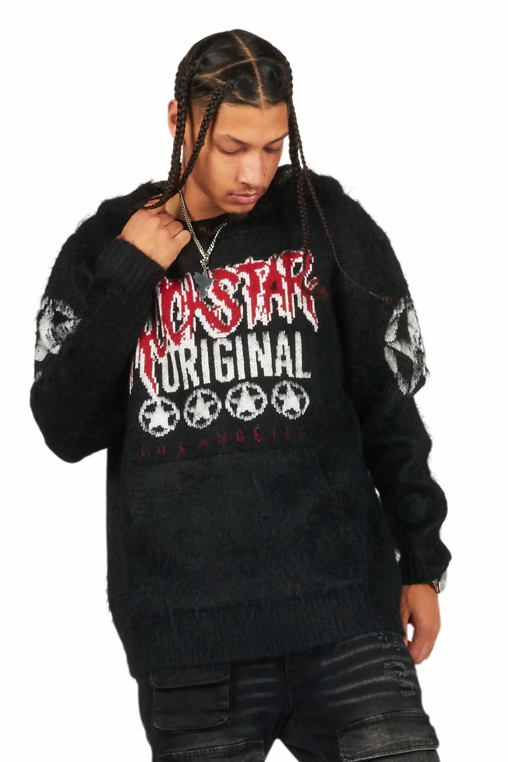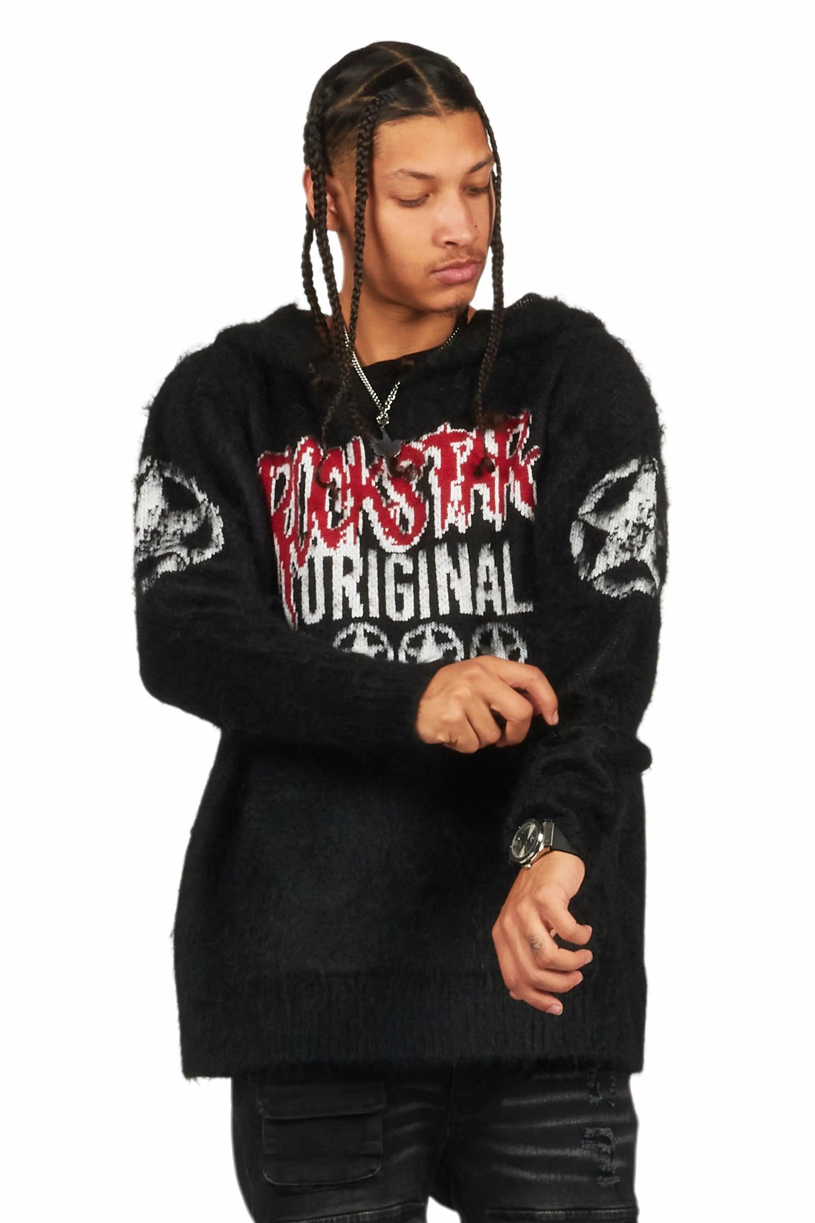 Wizzurd Black Graphic Knitted Mohair Hoodie Male