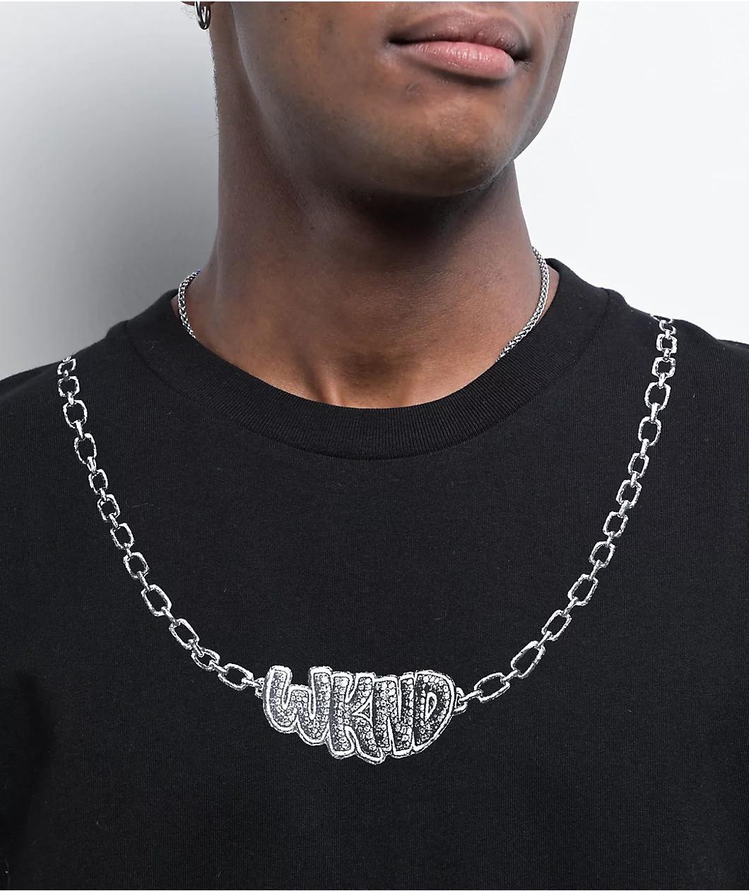 Arriving in a solid black cotton build from WKND Skateboards, the Slime t-shirt features a unique screen-printed novelty graphic for a fun, cheeky vibe to add to any outfit. The black short sleeve employs a printed chainlink pattern around the collar